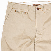 素材は定番のチノ 。USMC KhakiはWORKERS別注で、古着のUSMCと思われる茶系のベージュの個体から色を取ったもの。いわゆる「チノパン」のもう少し白いベージュとは違う。より土臭い雰囲気。