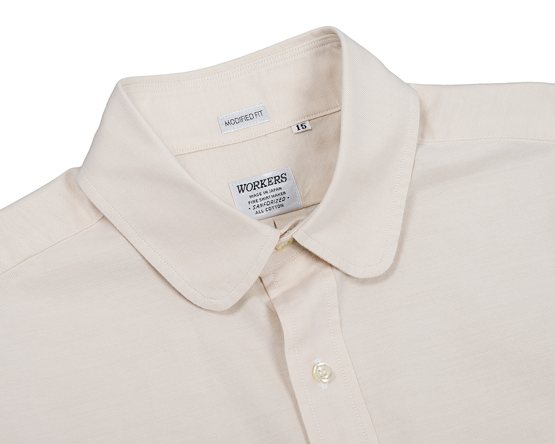 Modified Round Collar Shirt, Light Ecru Supima OX |