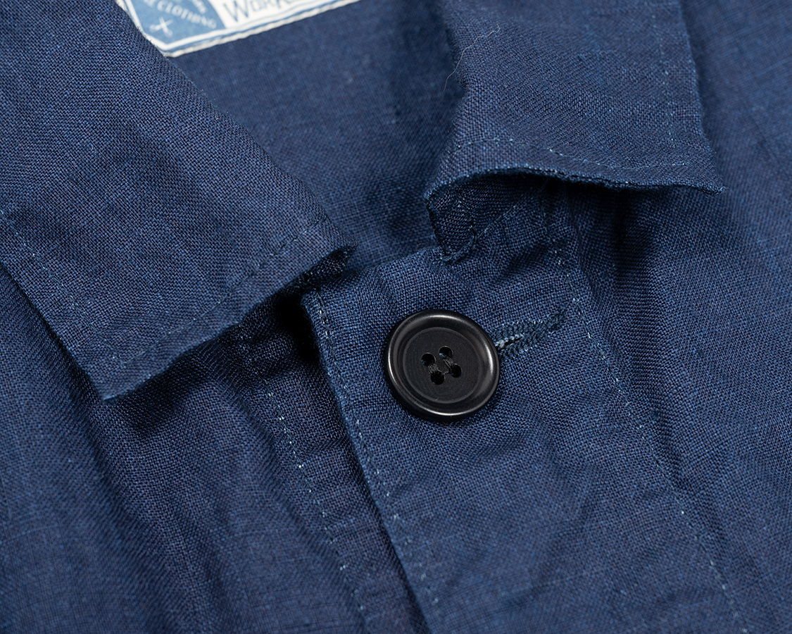 一方、反応染めはインディゴ染より堅牢度が良く、ムラも少ない染め方だと同じリネンでも表情が変わります。