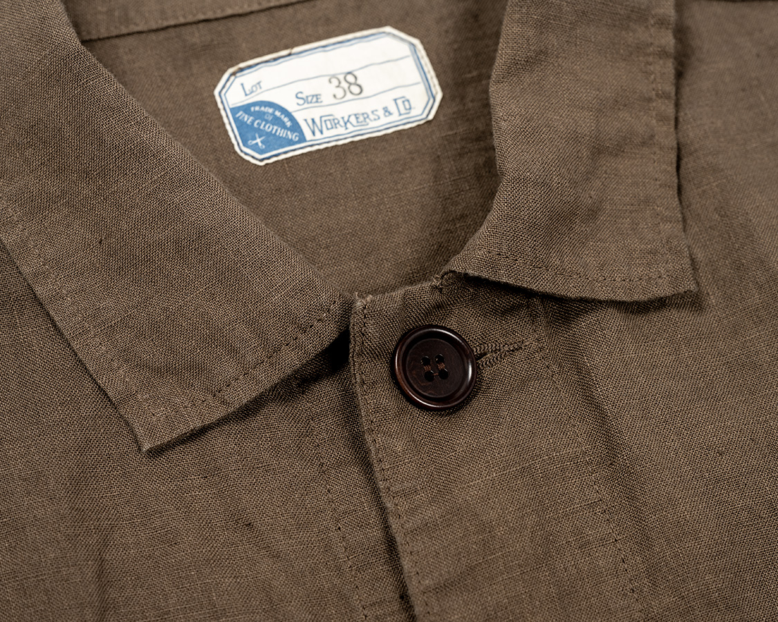 自分で21年版を着てみて「テーラー襟だと、どんなに素材がラフでもちょっとかっこよすぎるな」と感じました。あれはあれで良いのですが、さらに、ワークジャケットというか、カバーオールというか、ラフな雰囲気にしたくて襟のデザインを変更しました。