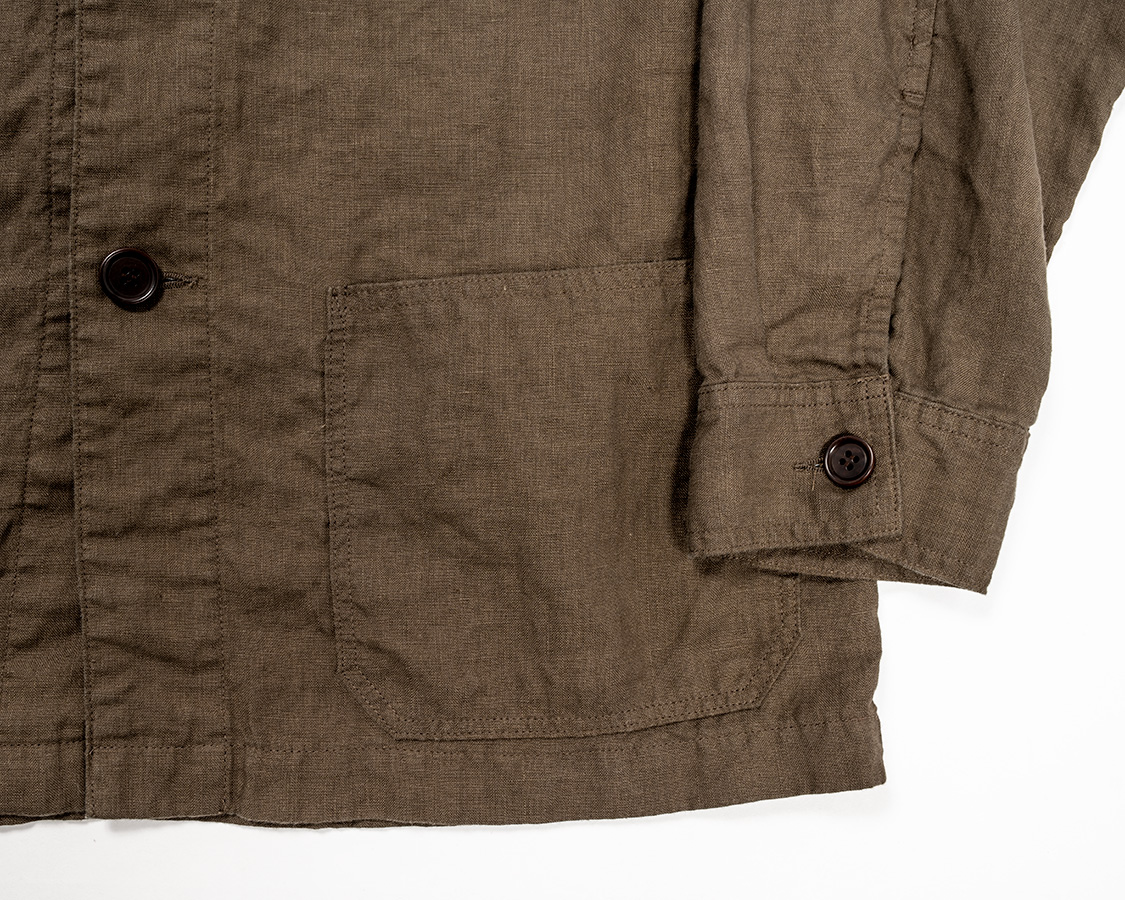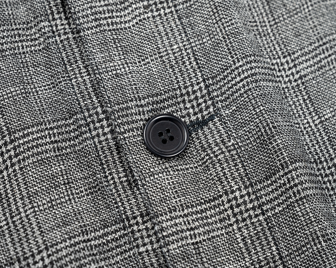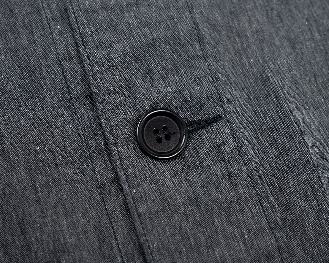 ボタンはコロゾ椰子。生地が天然繊維の柔らかい風合いがあるものばかりなので、ボタンもそれに合わせて天然物。ちょっと高いのですが、表地やデザインとよくマッチングしてます。