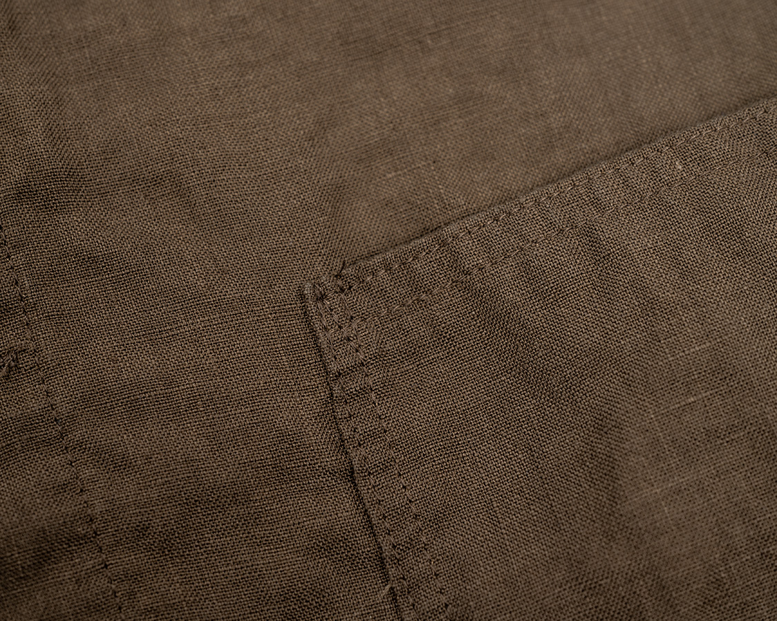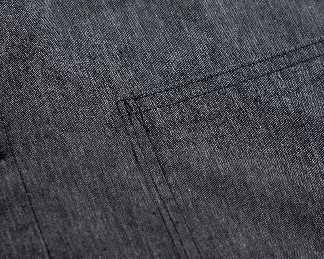 ポケット口はステッチでカンヌキ。素材がカバーオールのように分厚く無いので、カンドメで止めつけてしまうと針目が多く通り過ぎて、かえって強度がありすぎて生地をダメにするかな?と思い、ステッチのカンヌキにしています。