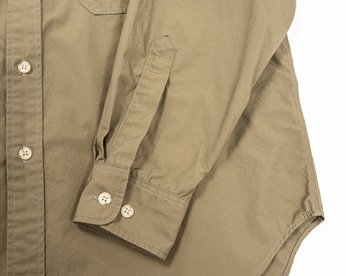 袖口、長めのプラケットで袖をまくりやすく。見えませんが、裏は断ち切り部分が見えないきれいな始末。