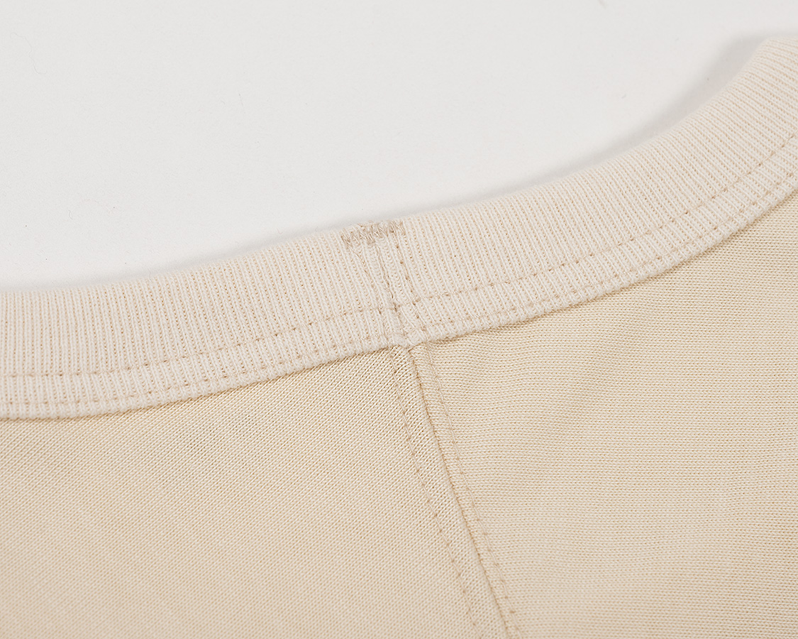 胸ヨークから上、肩線は切れ目がない。では、肩線の傾斜をどうやって出すか?後ろ中心に縫い目を移動させて肩の傾斜を作っています。ここが、WORKERSのフットボールTシリーズが、ビンテージのフットボールTと違う部分。あちらは肩傾斜が全くない。そうなると、どうしても肩先あたりで生地が余ります。それがビンテージらしい良さでもありますが、私はもう少し収まりが良い方が好きなのでパターンを変えています。