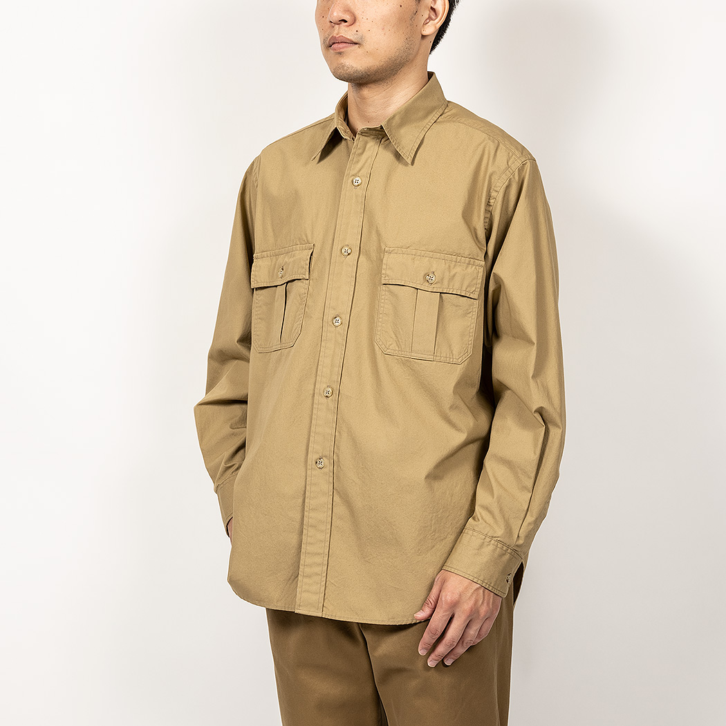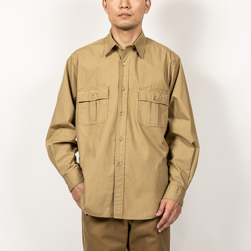 同じ形で素材をサファリからドレスシャツ的にアレンジしたブロードクロスは3オンス。素材に合わせてボタンもデザイン・大きさを変えています。