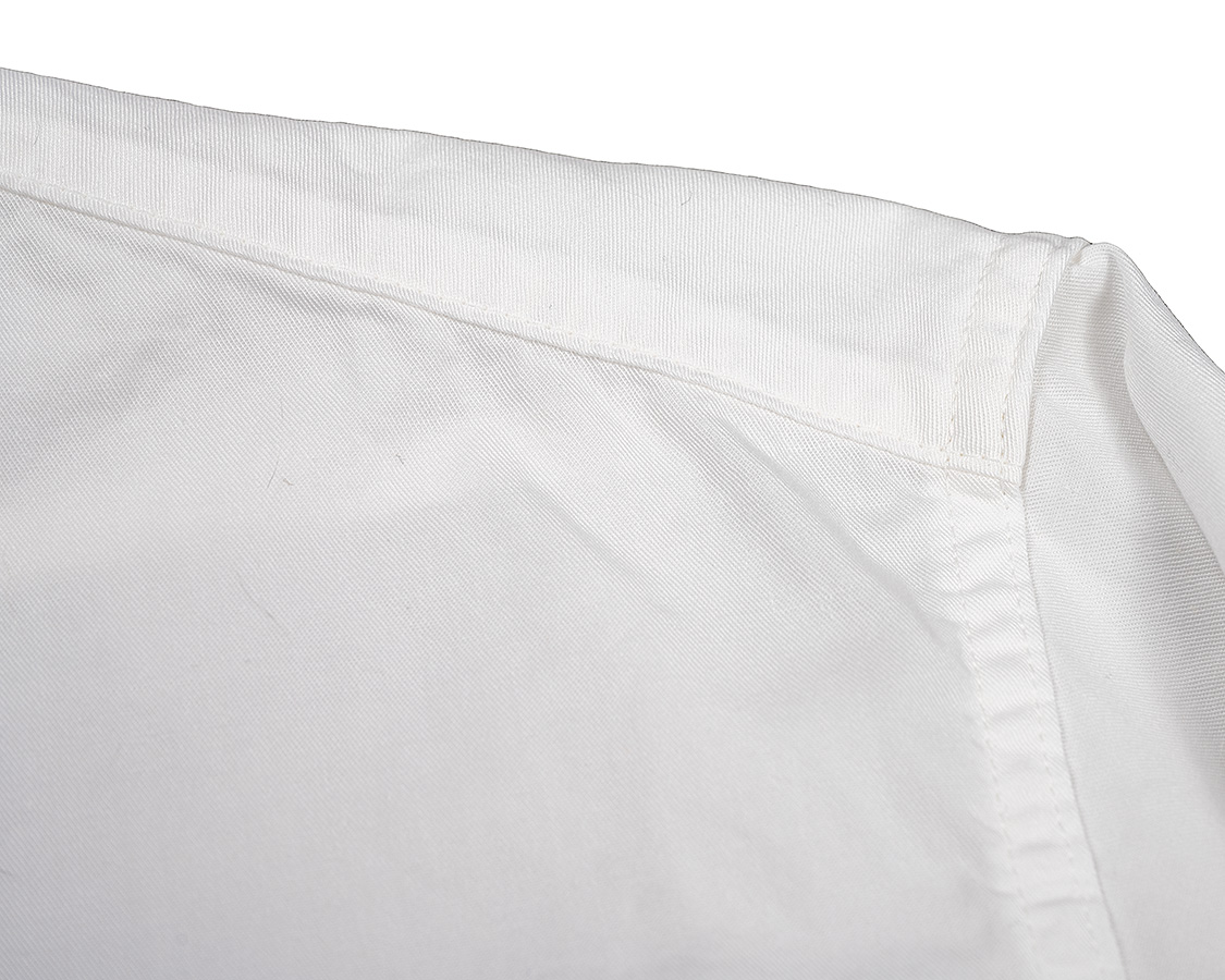 袖ぐりは巻縫い。肩ヨークはステッチあり。