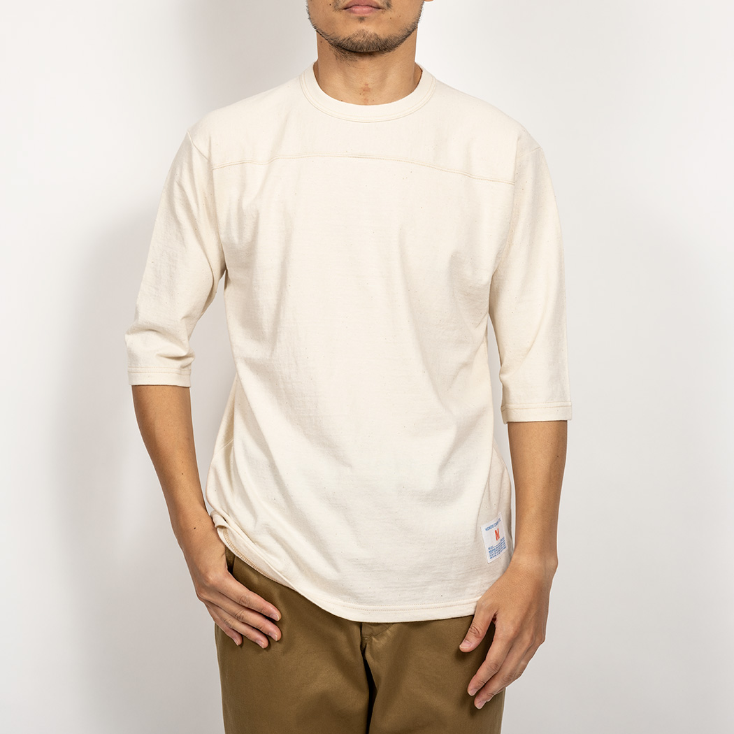 毎年恒例、フットボールT。21SSからは首周りのバインダーをフライス(リブ)に変更。以前は身頃と同じ生地で巻いてあり、生地が柔らかいので長く着るとバインダー部分が細くなりヨレも出てくる。それが、ビンテージらしくて好きという方もいましたが今回はフライス(リブ)に変更。しゃっきりした状態が長持ちするように。