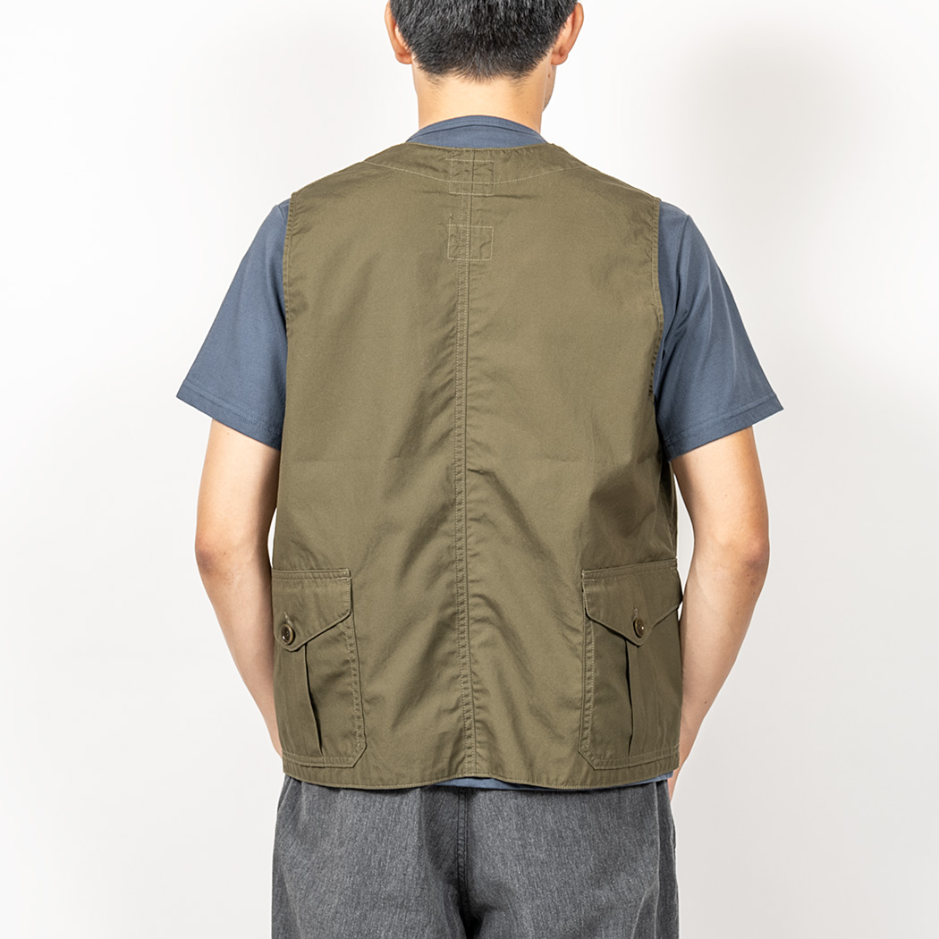 腰の二室ポケット、フロントの三日月型ポケット、内ポケットも左右に二つポケッ ト。フロント・バック共に裏地付。本来、ハンティングで獲物を入れたり、道具を入れて両手をあけるための「道具服」で、 WORKERS 版も「着るバッグ」といった雰囲気。