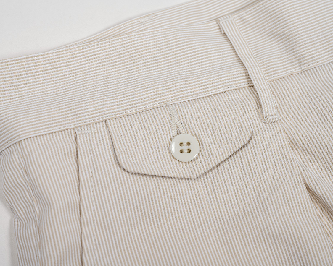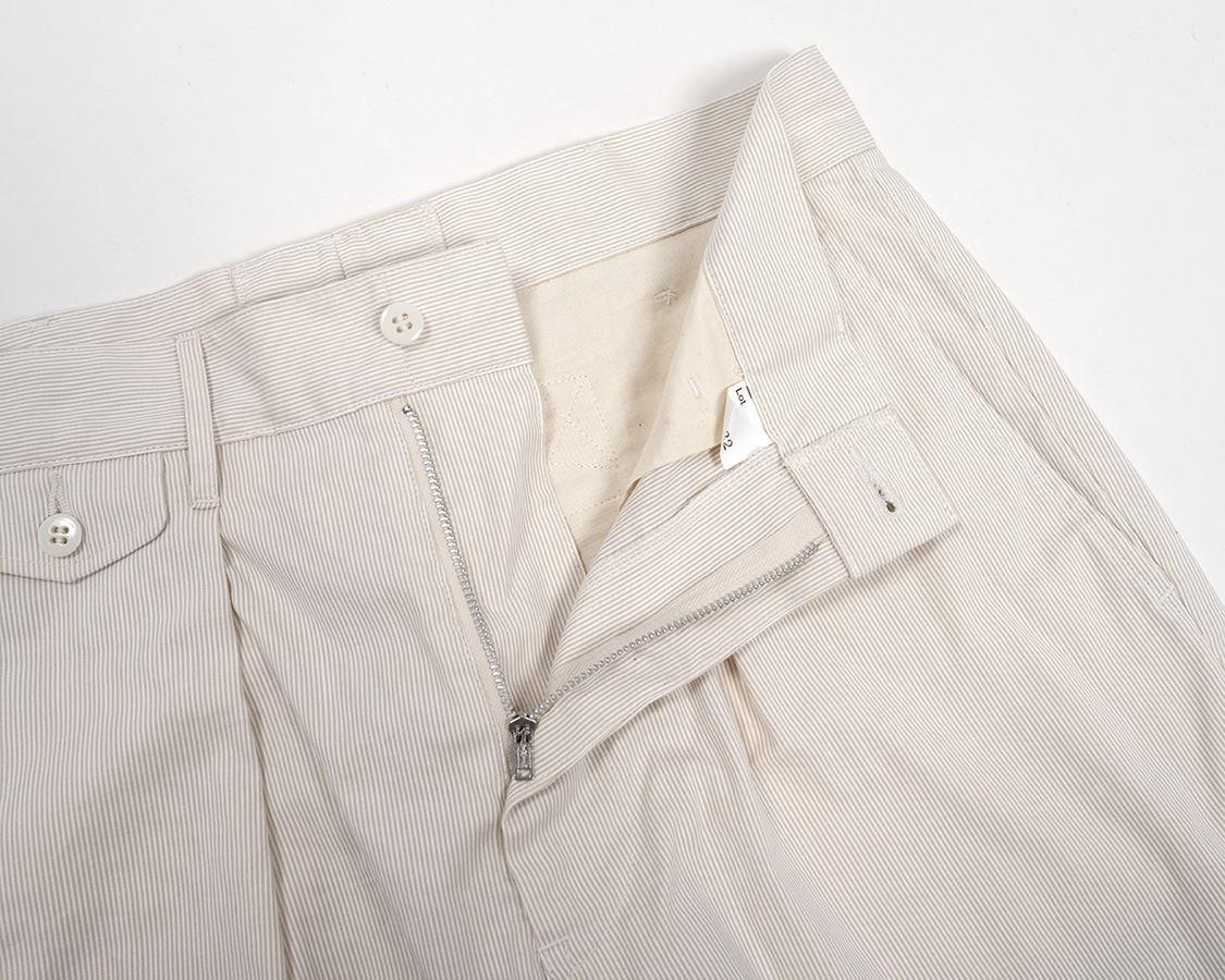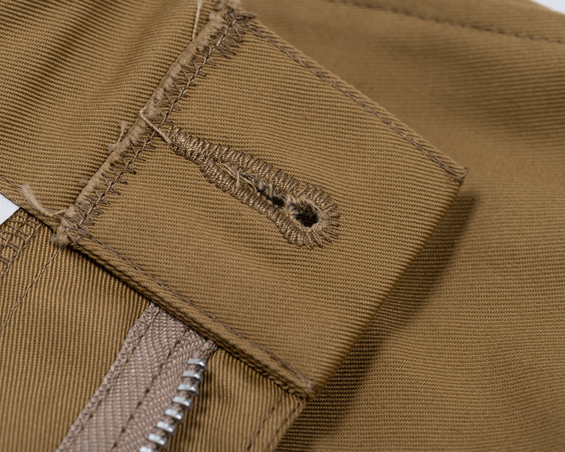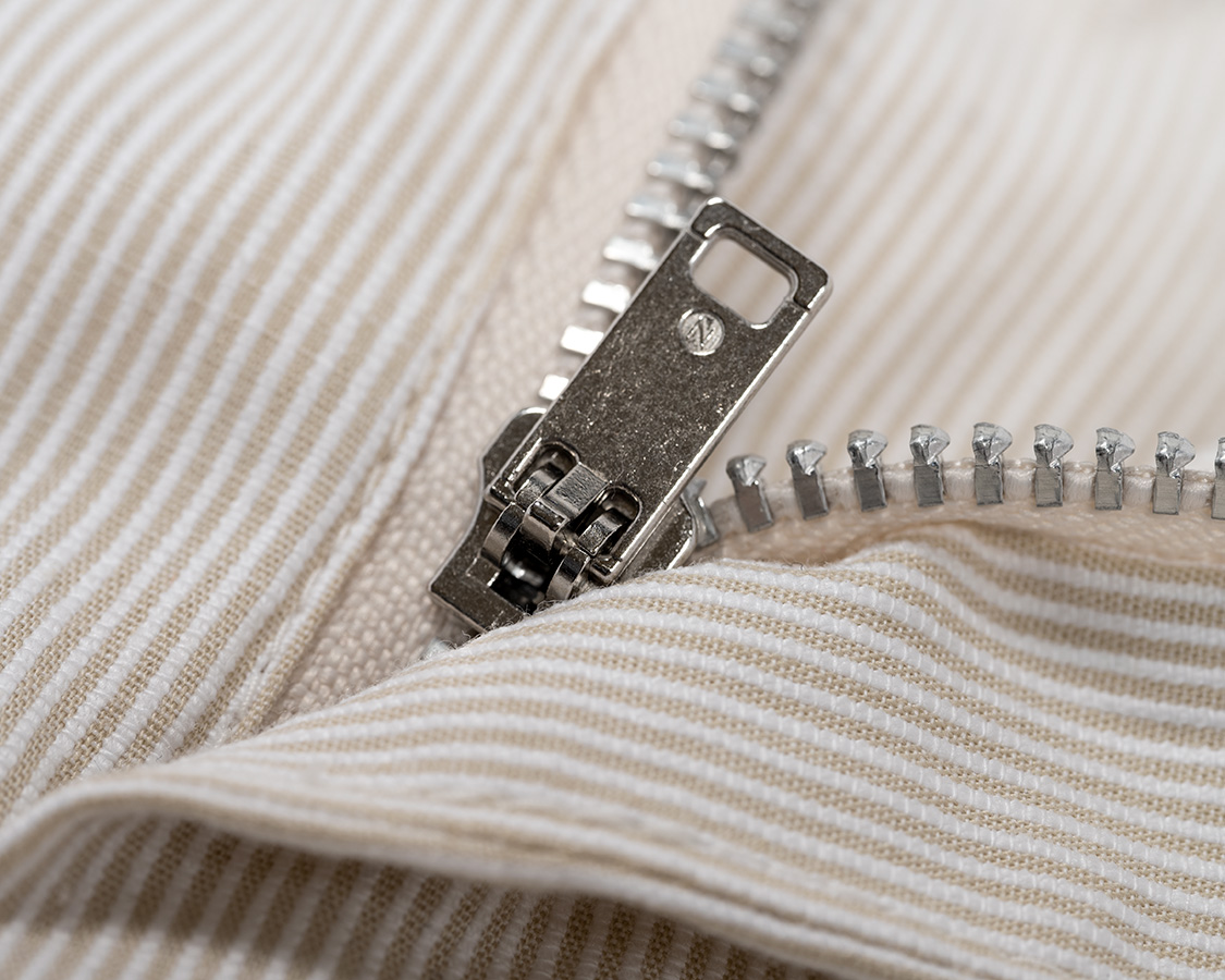 オートマチックロックのYZIP。YKKの中でも、とてもビンテージっぽい雰囲気を持っているのでトラウザーズのフロントにはよく使います。