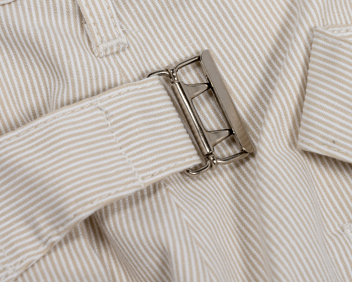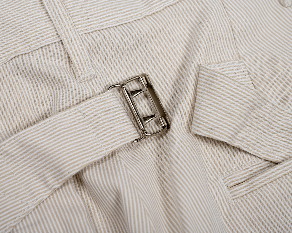 ウェストの調整はベルトが必要なのでベルトループもつけました。ちょっとサンプルはループが長かったので、量産は1センチ程短くします。