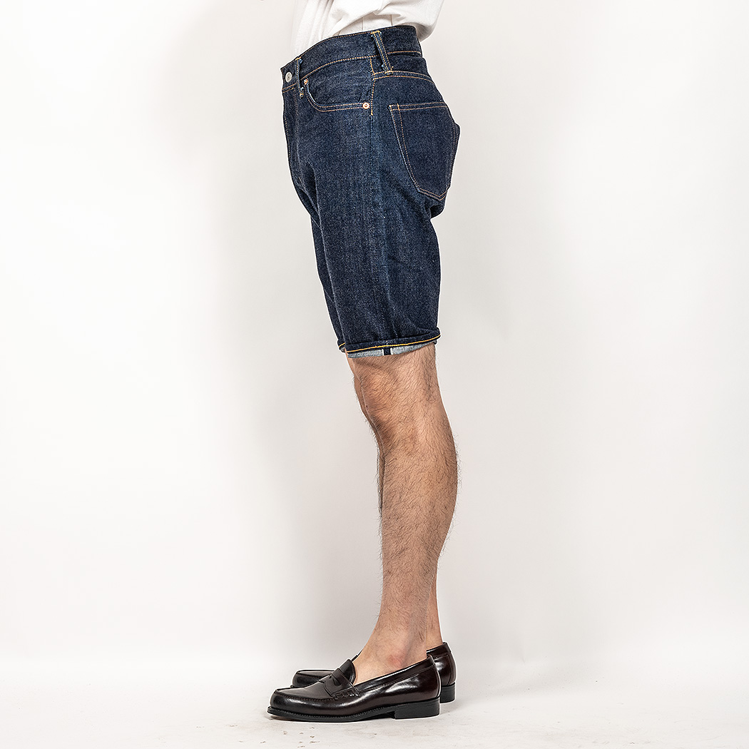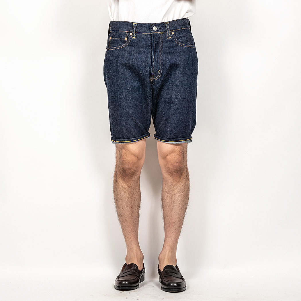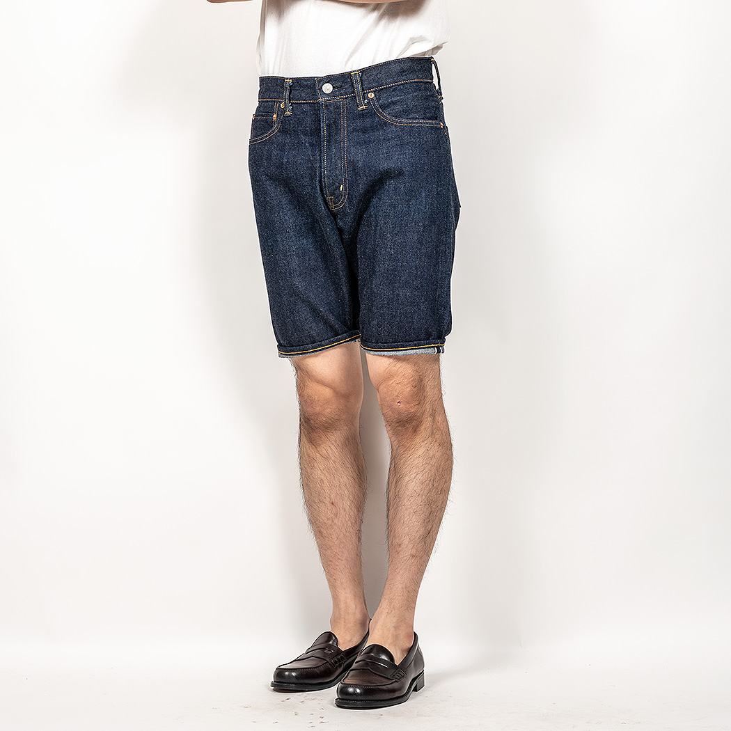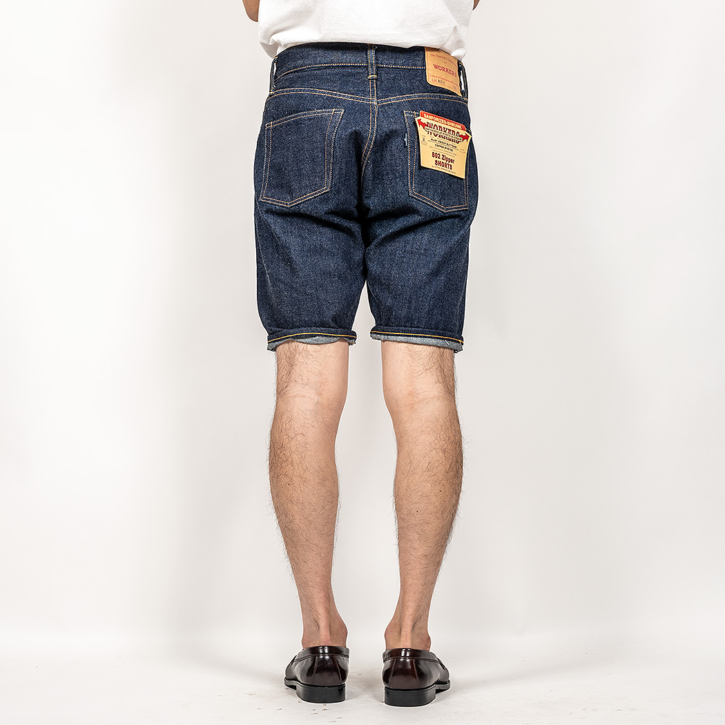 WORKERS オリジナル、米綿100%で糸を作りインディゴ100%染色、弱テンションで織った13.5 オンスクラスデニム。これを防縮加工して14.5 オンスほどに縮ませた生地で作ったショートパンツ。