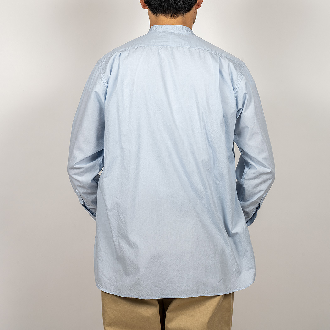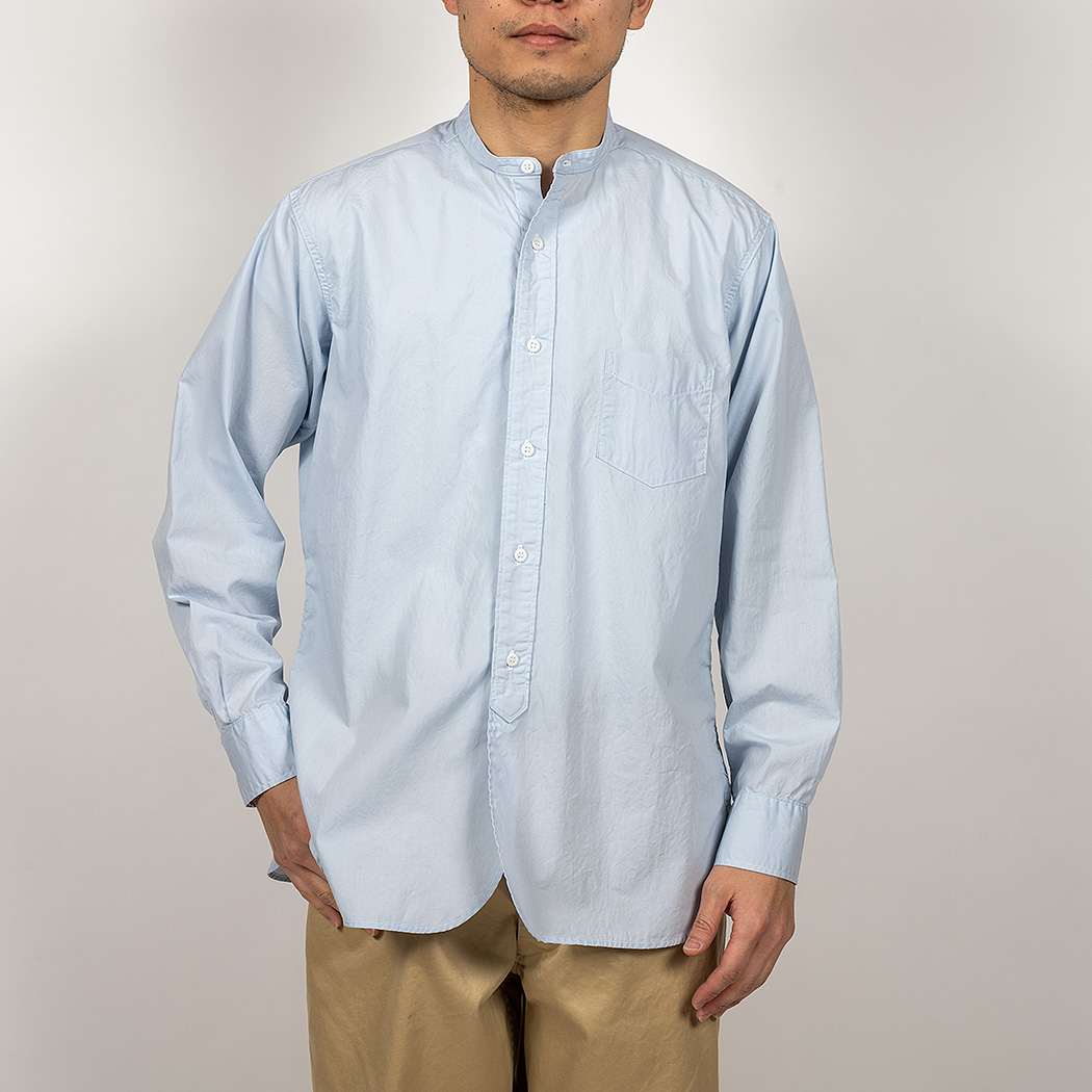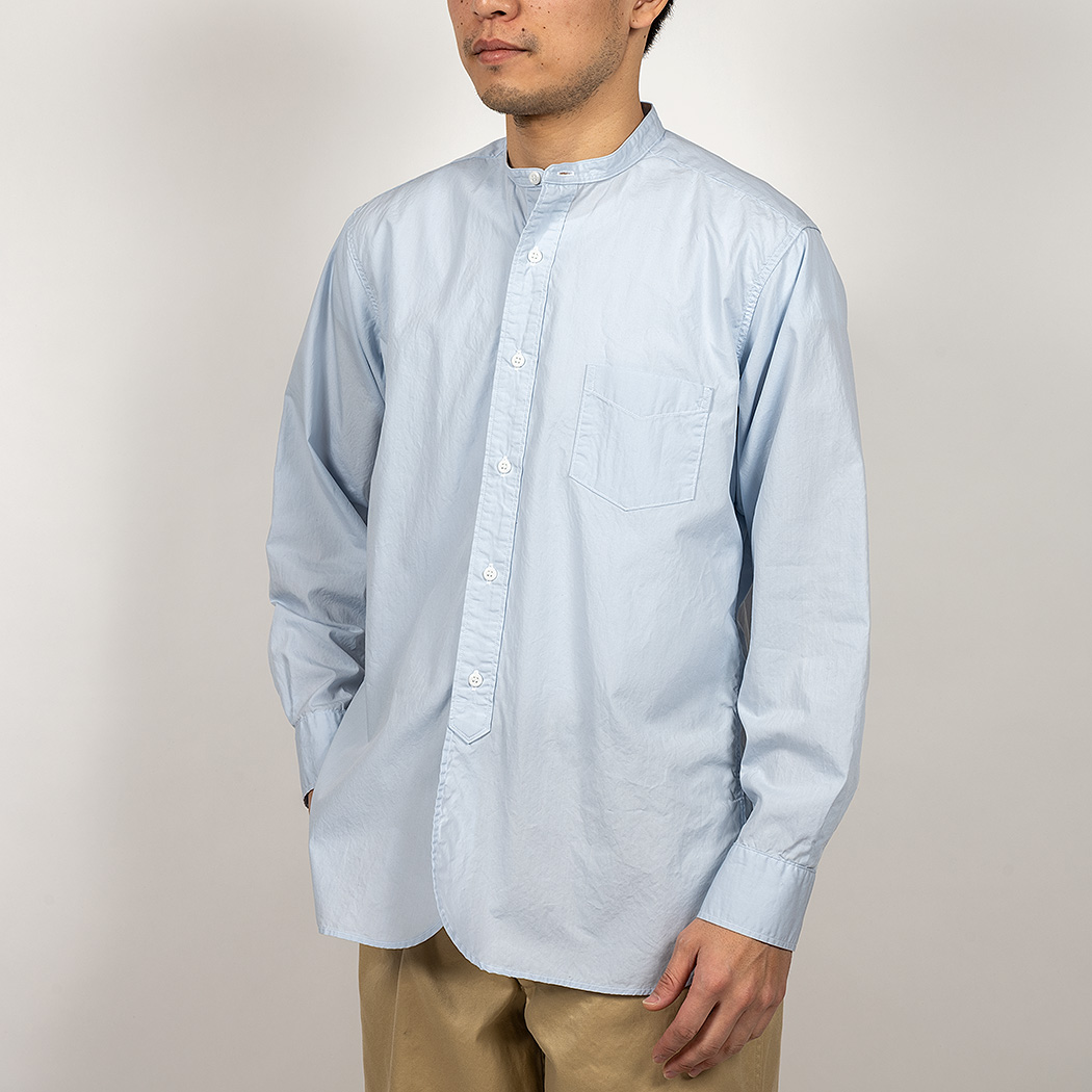 ビンテージのイギリスミリタリーらしきバンドカラーシャツから着想を得て作りました。