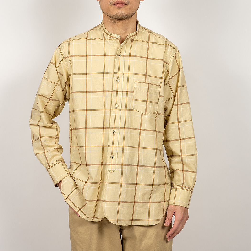 Band Collar Shirt, Check Twill