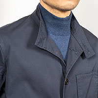 実際、自分で着てみるとリラックスしたフィット感に、小ぶりな襟が中に着るものを選ばない。丸首、モックネックのカッ トソー良し、ボタンダウン良し。 最近、フランス服大好きなルボナー松本さんですら「あまりに趣味性が高すぎて売れないだろ〜」と言われましたが、出来上がって自分で着てみると意外とすんなり着られる。Lounge Jacket とはまた一味違う、WORKERS の一重ジャケット。