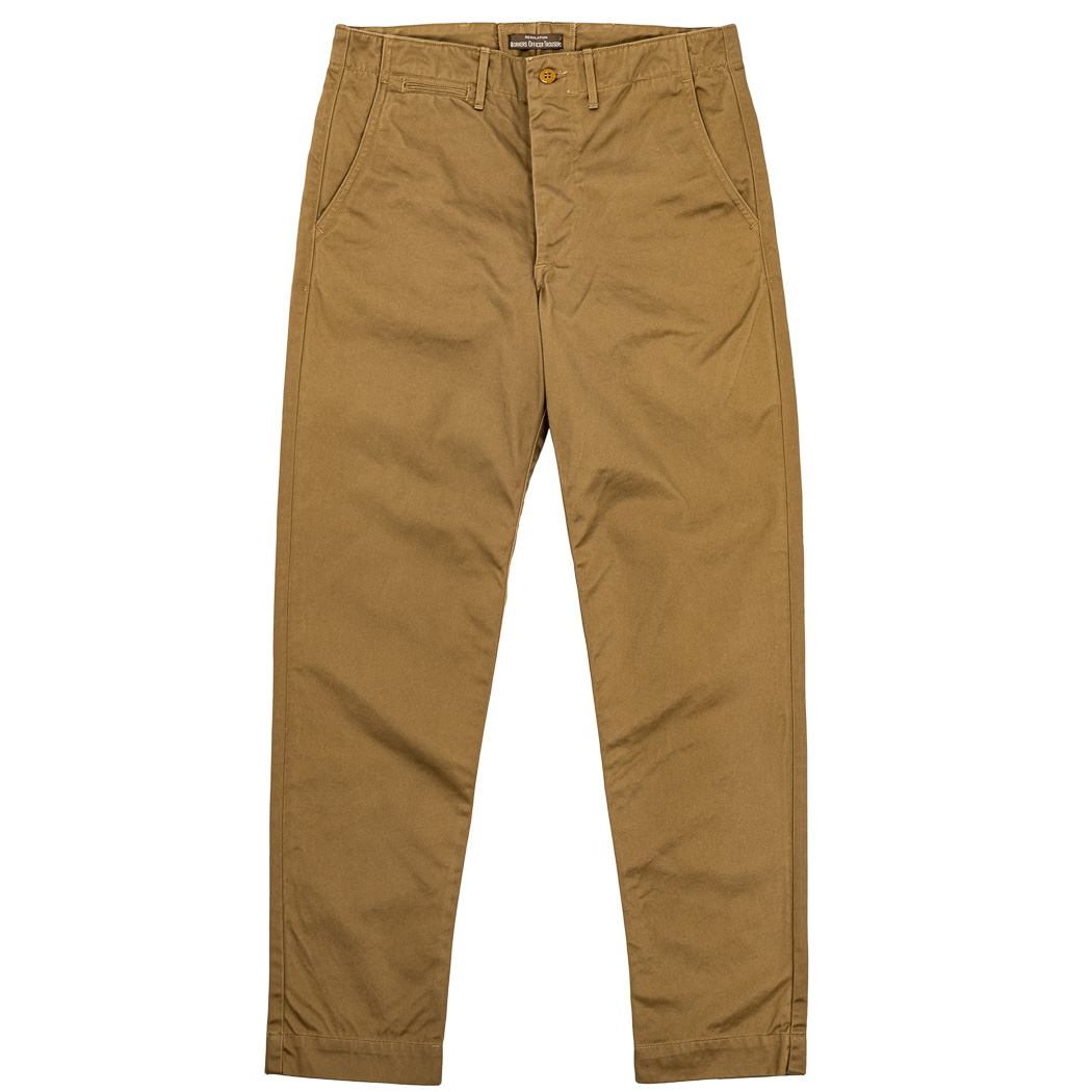 おなじみ、古今様々なチノパンを混ぜて作った Workers Officer Trousers。
