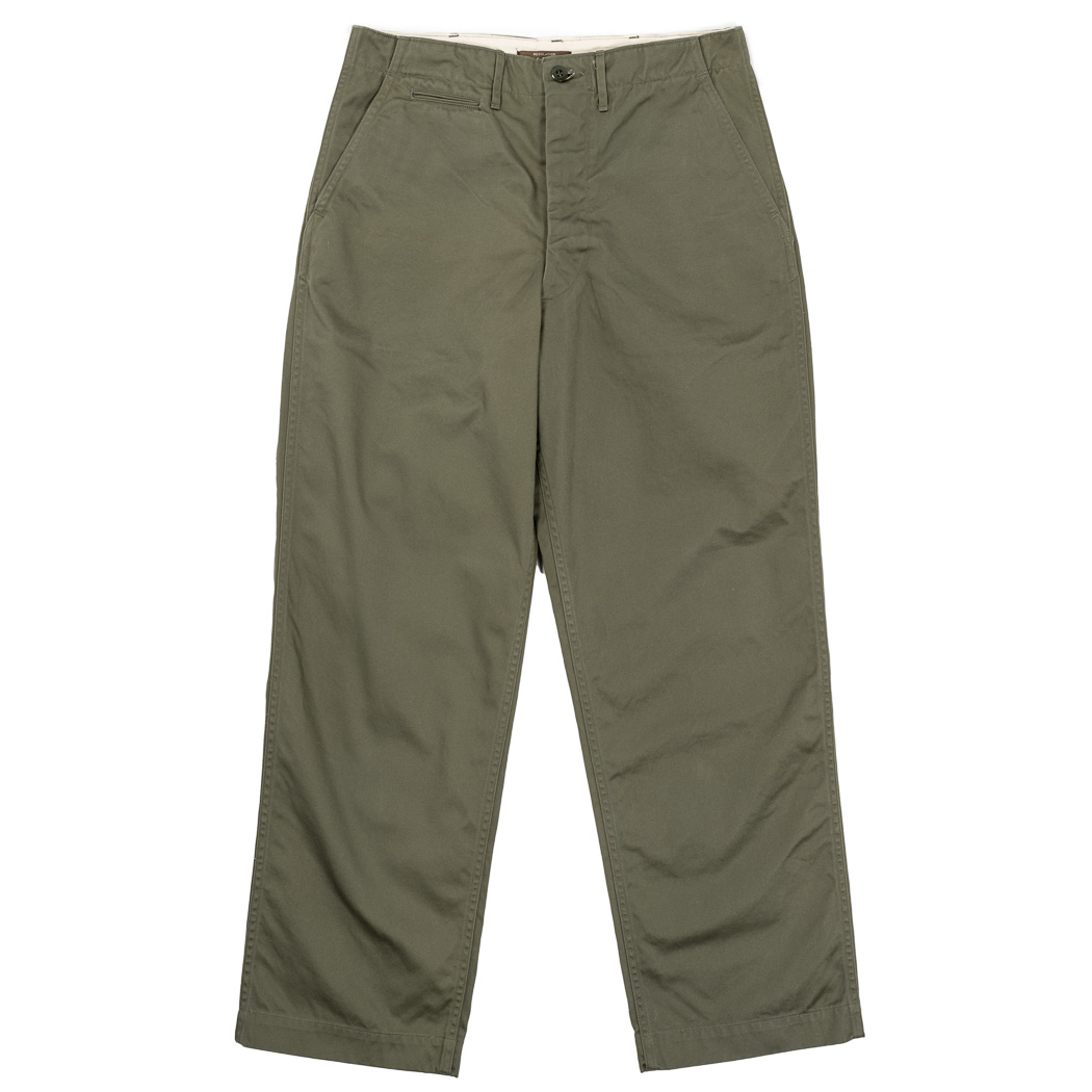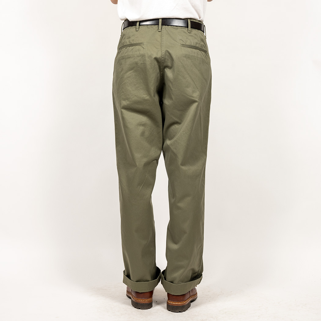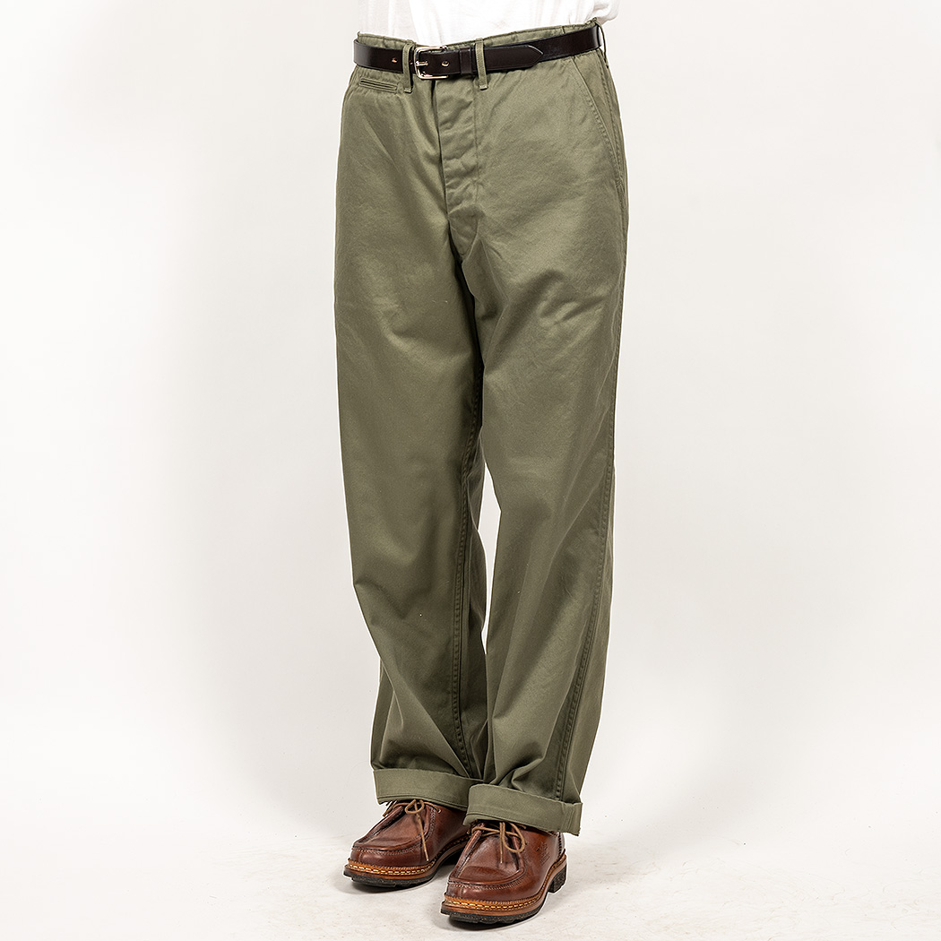 おなじみ、古今様々なチノパンを混ぜて作った Workers Officer Trousers。