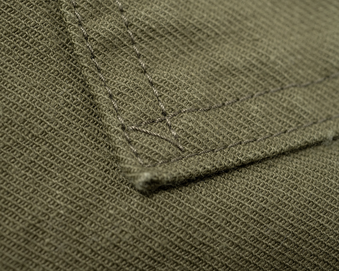 ポケットは身頃の取り付け位置よりわずかに大きく作っています。あえて、少し皺が出る。手が入れやすいようにという仕様。