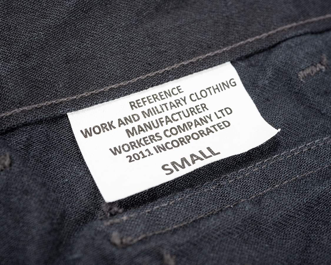 腰裏に流し込むサイズ兼ブランドネーム。ミリタリー風のデザイン。
