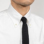 シルエット、身頃にフィット感はあるがピタピタでは無い。肩幅も落ちすぎず、入りすぎず。着丈は裾を出しても・入れ ても着られる 75 センチ程がマスターサイズ。袖ぐりのカマ(縦方向の寸法)自体はある程度余裕があり、窮屈さは無い。 でも肘から先をわずかに細くしてすっきりと。その分、袖がまくりづらくなるので、袖口の開きは深めにとる・・・といっ たように、機能性を考えて型紙をひいています。デザイン的なシャツでは無く、設計的なシャツとでもいうのでしょうか。 型紙を自分でひくからこそ、こういう作り方の品番もあるのです