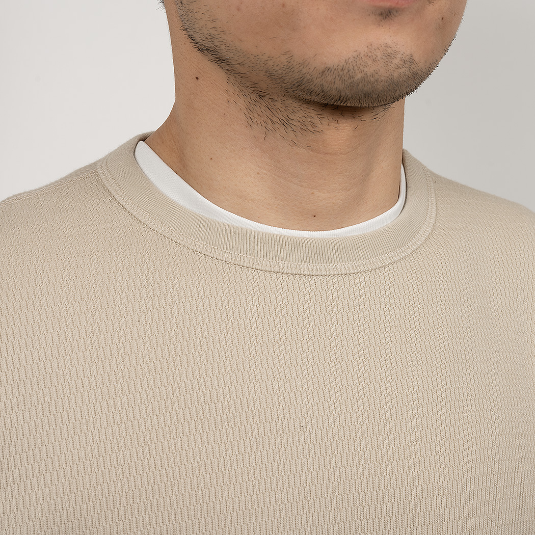 生地は前回同様のハニカム。ミリタリーの古着を元に探していたらちょうど良いタイミングで生地屋さんが作ってくれた もの。そこに首・袖口はフライス(リブ)を。このリブが大事。手首がスースーしない。多少、袖が長いのも吸収してくれる。