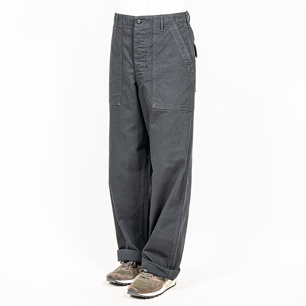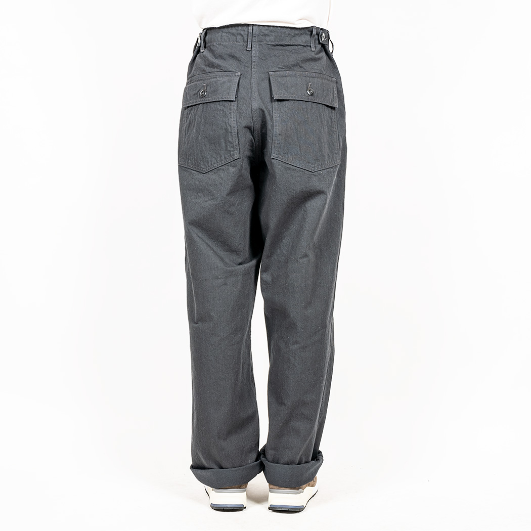具体的には、解体したデッドストック、MIL-T-838Dからトレース。太い裾、広いワタリ、深めのまた上。いわゆる「軍パン」のシルエット。