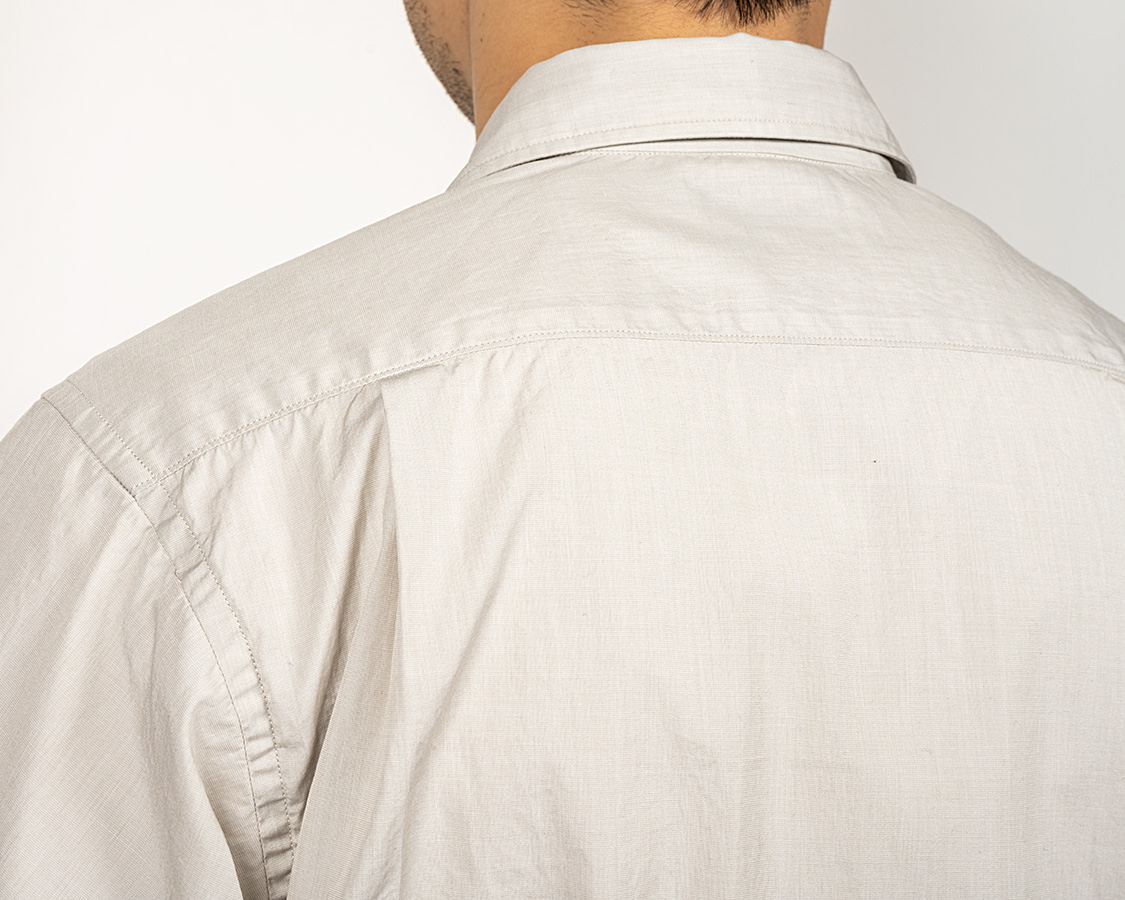 背面、タックはサイド。ヨークは押さえステッチあり。