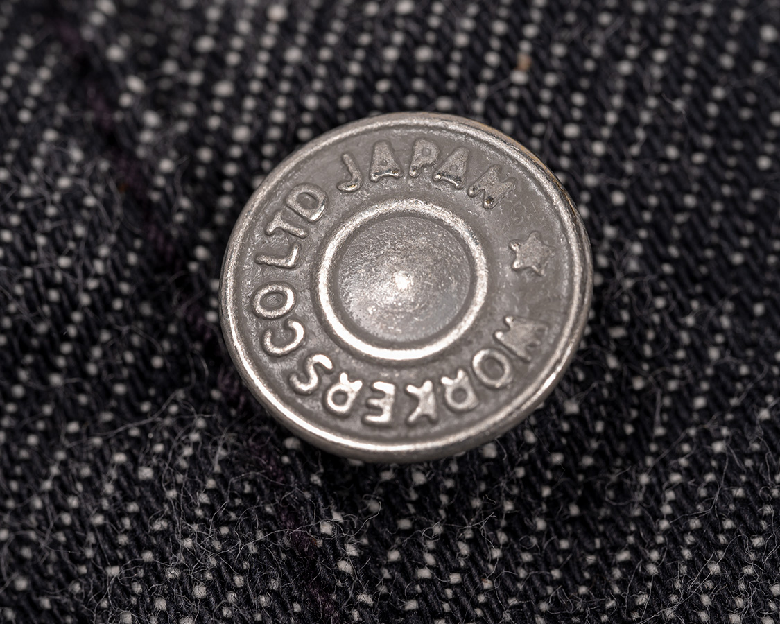 リベットのアップ。生地をいかにも「打ちぬきましたよ!」と一部出てくるリベット。これがわざわざこうなるように「規格」として作るのだからYKKさんも中々、ビンテージ心がわかってくれています。いや、もともとスコービルジャパンだったんだから、スコービルがわかっていたのか?