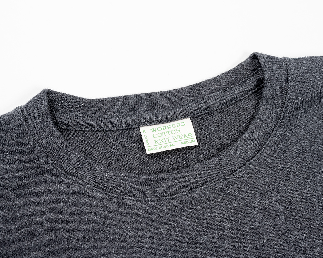通常は、身頃天竺に対し首回りはフライス。でもこれだとどうしても色のトーンが微妙に変わる。なんとか、まったく同じトーンにしたくて身頃をフライス代わりにしたかったのですが、天竺とフライスは物性が違う。