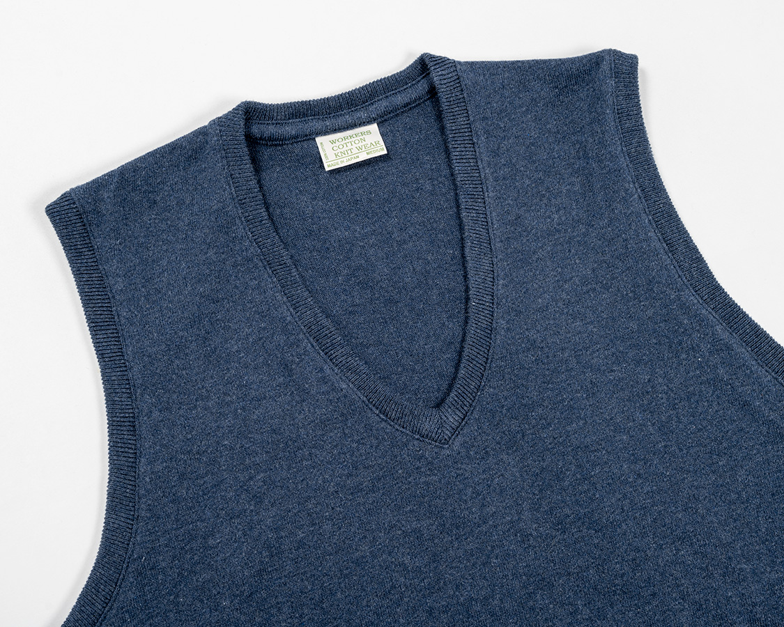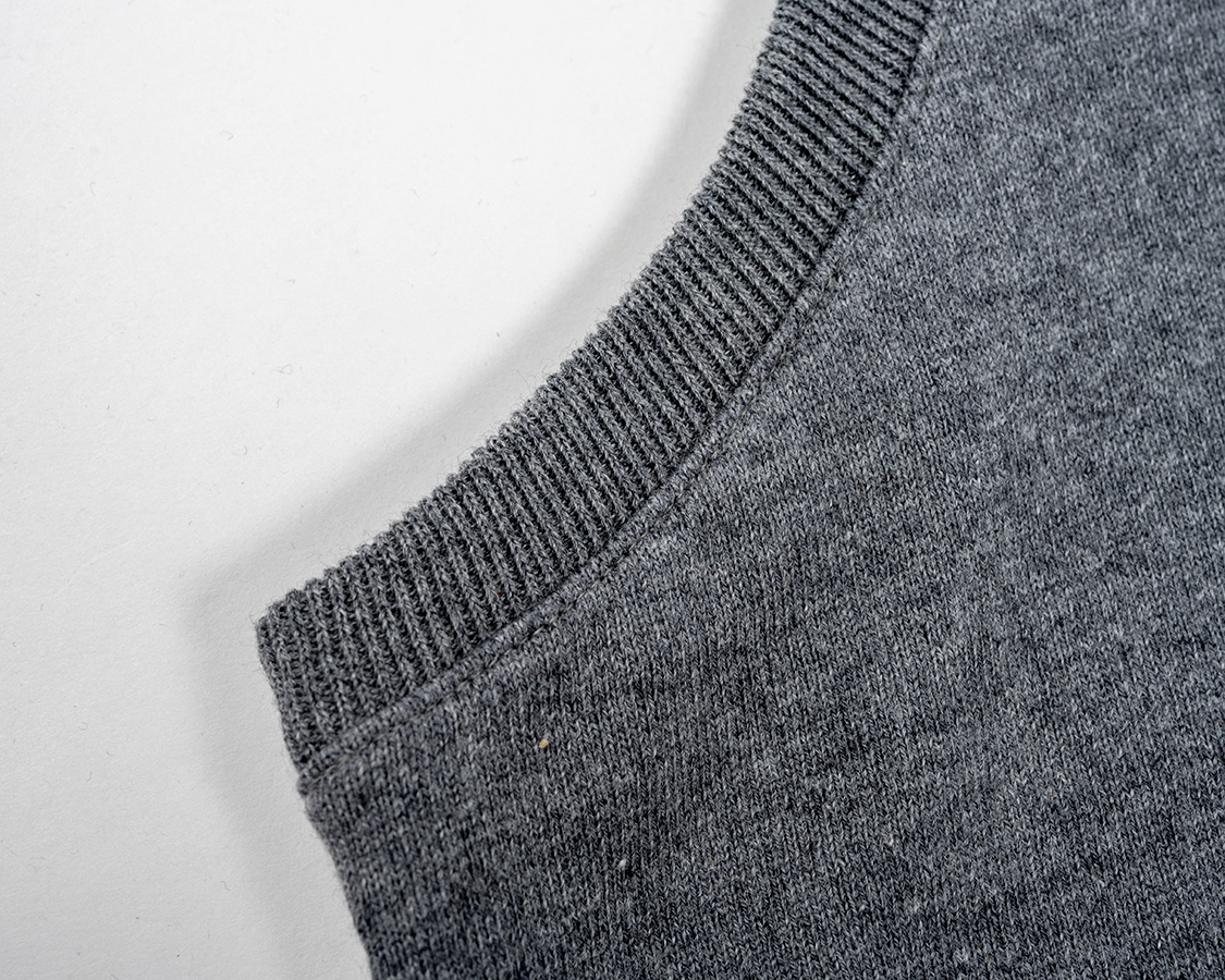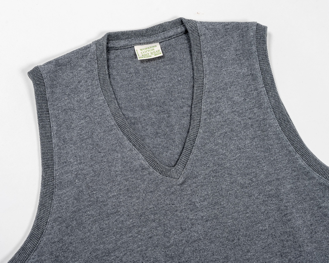 前V以上に大事なのが袖ぐり。ここも、袖本体より少しだけ袖ぐりのフライス(リブ)を短くして。フライスがその短い寸法に戻ろうとする力で体に適度にフィットさせています。