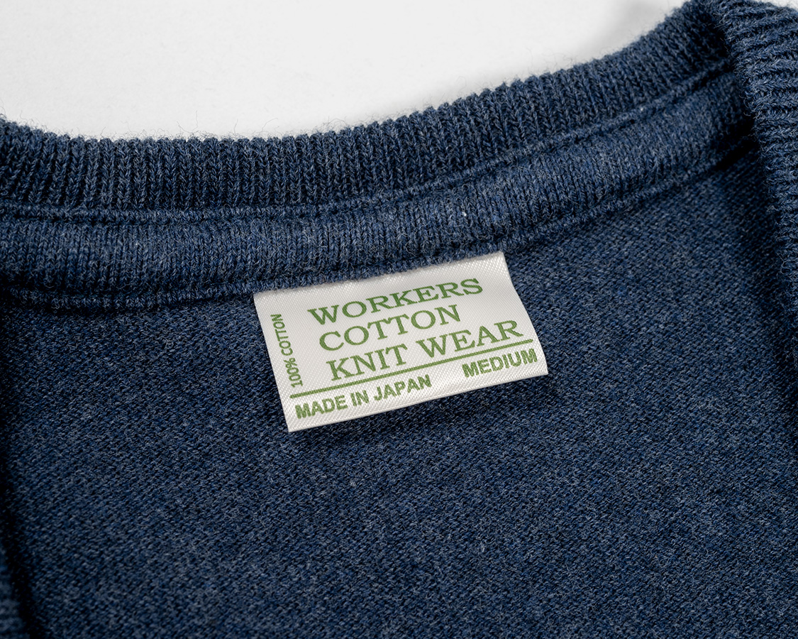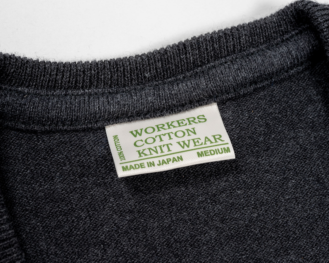 セーターのようでセーターではない。カットソーならではの部分がこの「タコバインダー」。肩からネック、逆の肩まで。伸び止めにパーツを裏から縫い付けています。