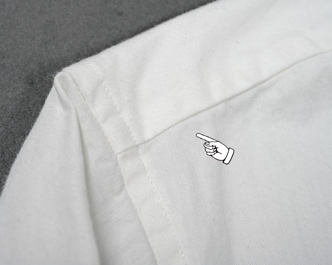肩ヨークのステッチ無し。おなじみ「誰が呼んだかコンストラクションヨーク」です。