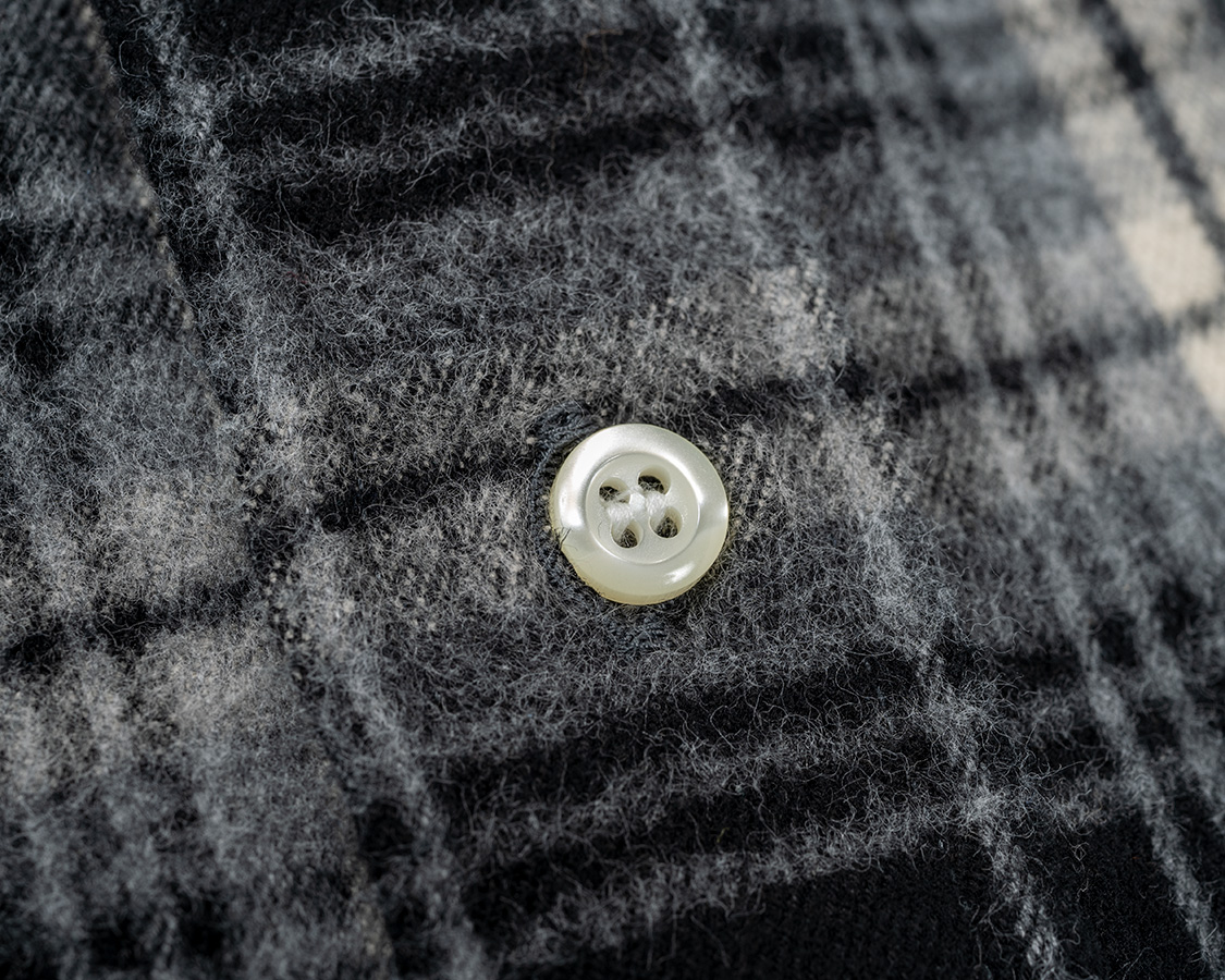 ボタン、ポリエステルの耐衝撃ボタン。洗濯機で洗ってもまず欠けません。