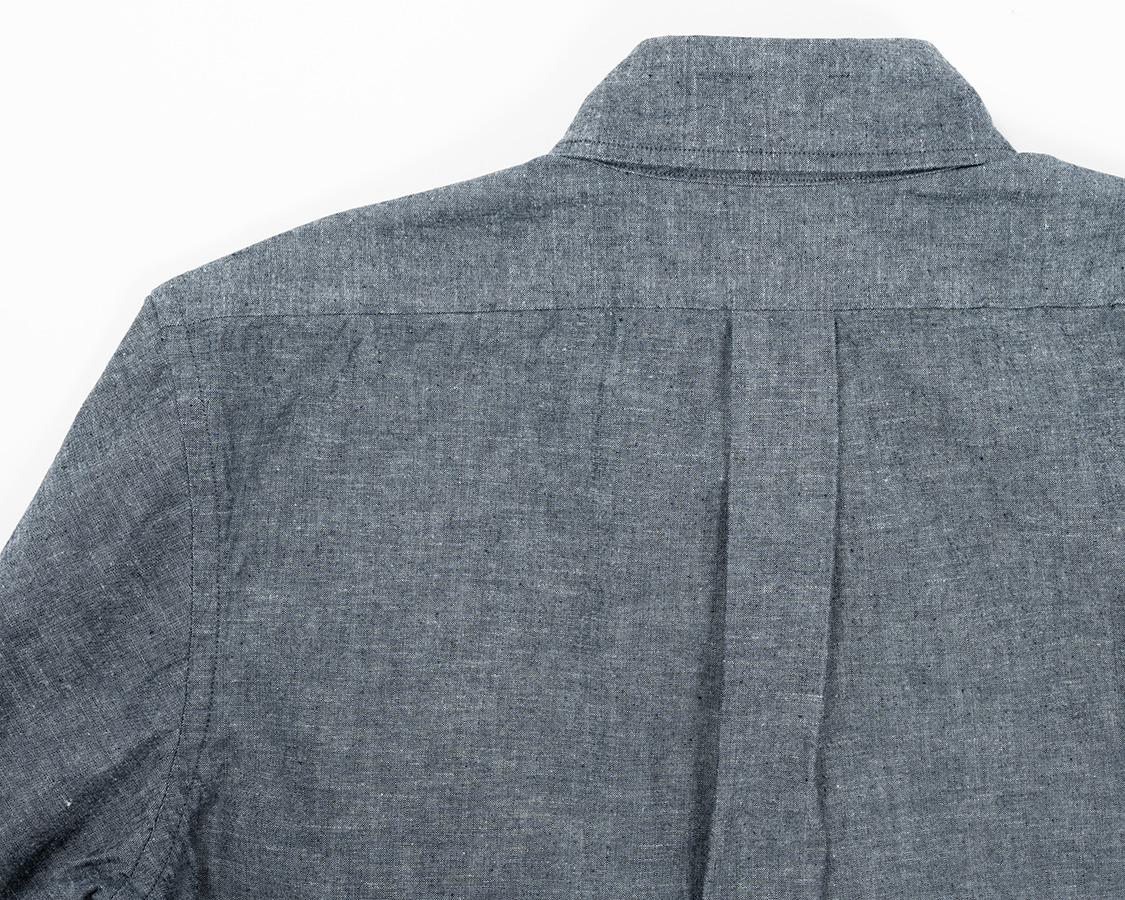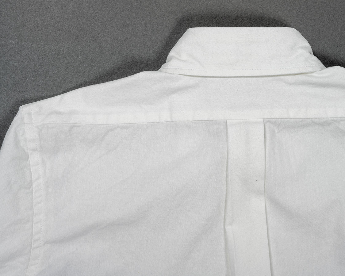 背面、中心にタック。ヨークは前と同じくステッチ無し。