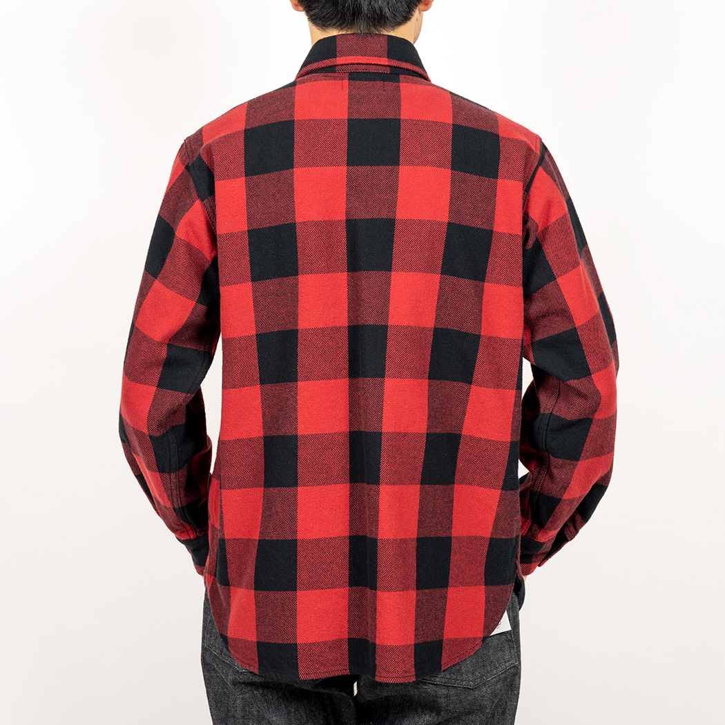 昔ビンテージショーで見た、バッファローチェックのウールシャツにUSNのカバーオールという人がとてもかっこよかった。その印象がずっと残っていて、あれをコットンでできたらなと思い形にしてみました。ただ、久しく作らなかったのは価格が高いから。生地幅が狭い×生地単価が高い×柄合わせで一着に必要なメーター多い×柄合わせ裁断でチャージアップと4重苦。だからチェックの厚手シャツは無地に比べて突出して値段が高いのです。