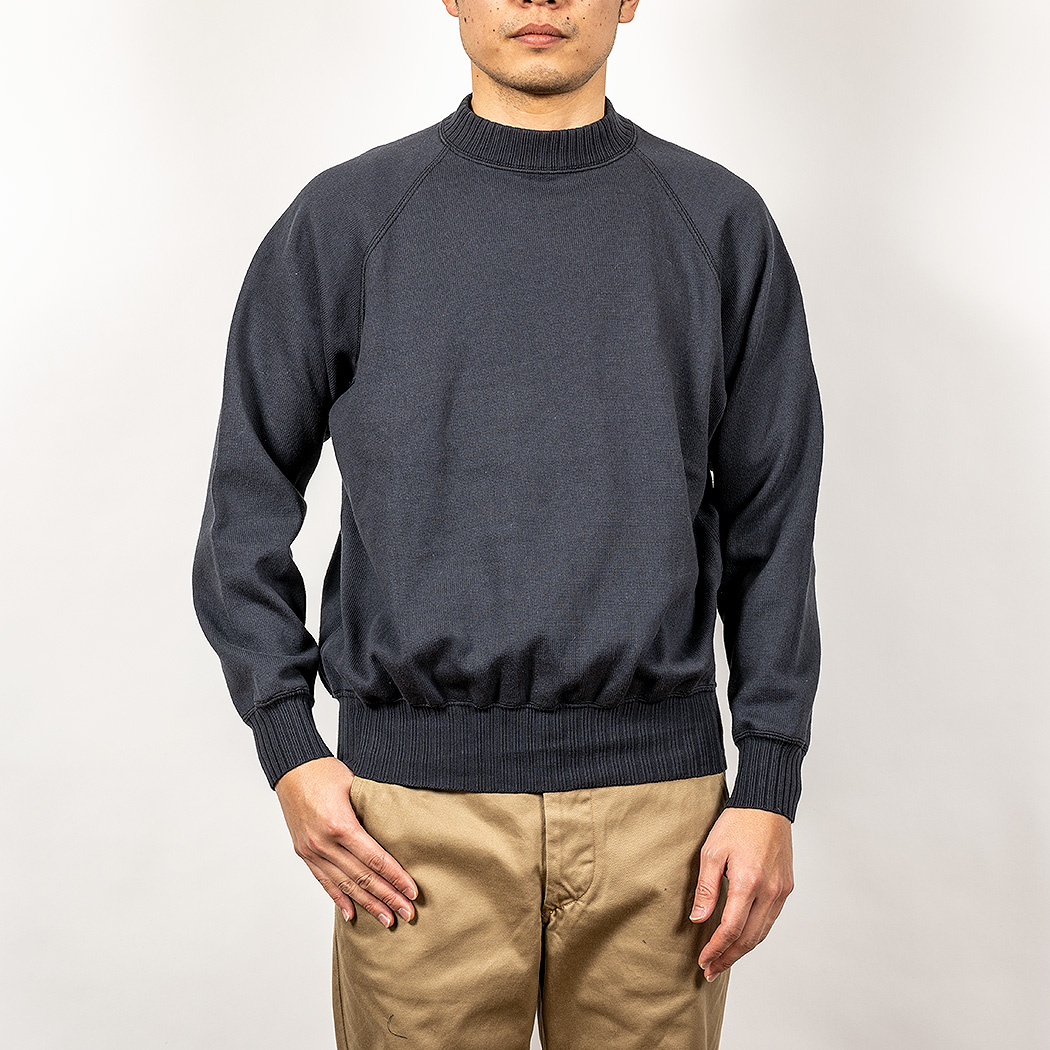 Raglan Cotton Sweater は今回同時に作った居るRAF Sweaterよりも袖が太く、首回りもゆったり。中にシャツを着ることを想定して作りました。元ネタはJohnstons のカシミアセーター。数年前、15PLY というすさまじい極厚の一枚を見つけました。値段もすごい!10万超え!どうしても物が見たくて何とか手に入れましたが、その重みにびっくり。さらにウールは重すぎると伸びる伸びる。そこで、コットンなら伸びに強いと形にしてみました。 |