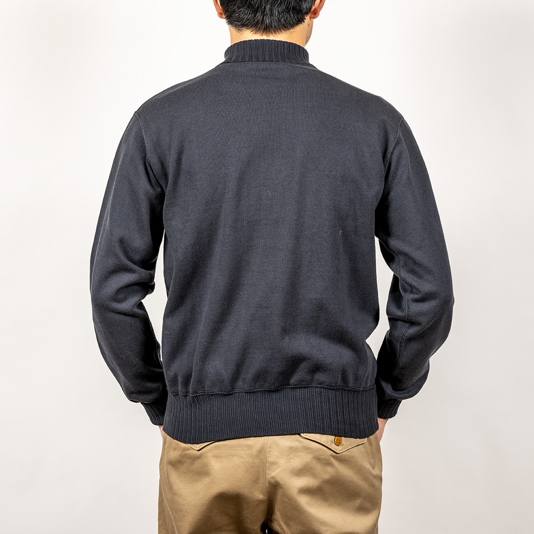 RAF Sweater、イメージは映画ダンケルグで出てきたRAFパイロットが着ていたハイネック。イギリス系のミリタリーウールセーターで、極太の針抜きリブが良くあります。RAF だとか、サブマリンだとか色々言われ、ウールで作られたリプロを着てみたことがあるのですが・・・当然チクチクする。インナーを着ても、どうしても首がチクチク。そこで、あの雰囲気をコットンで作ったのがWORKERSのRAF Sweater。