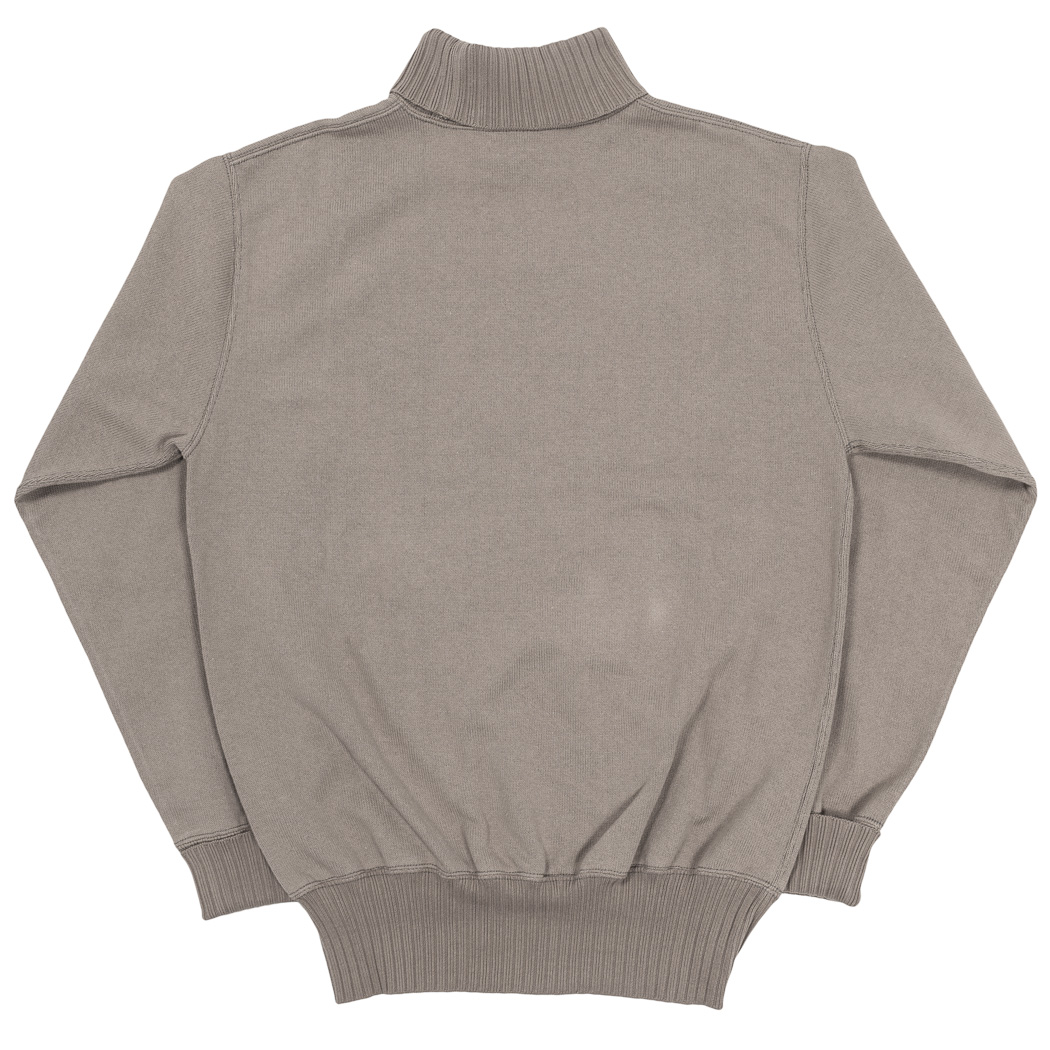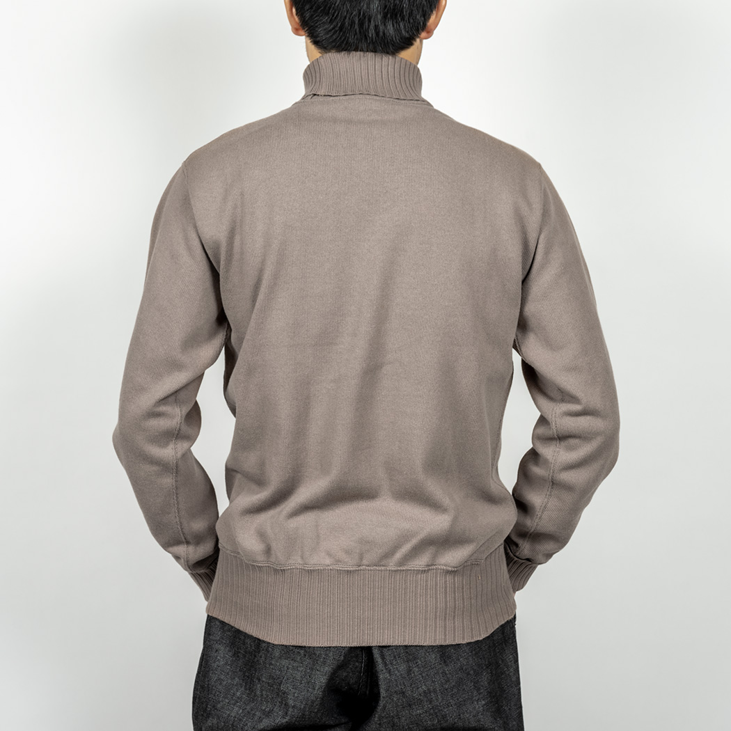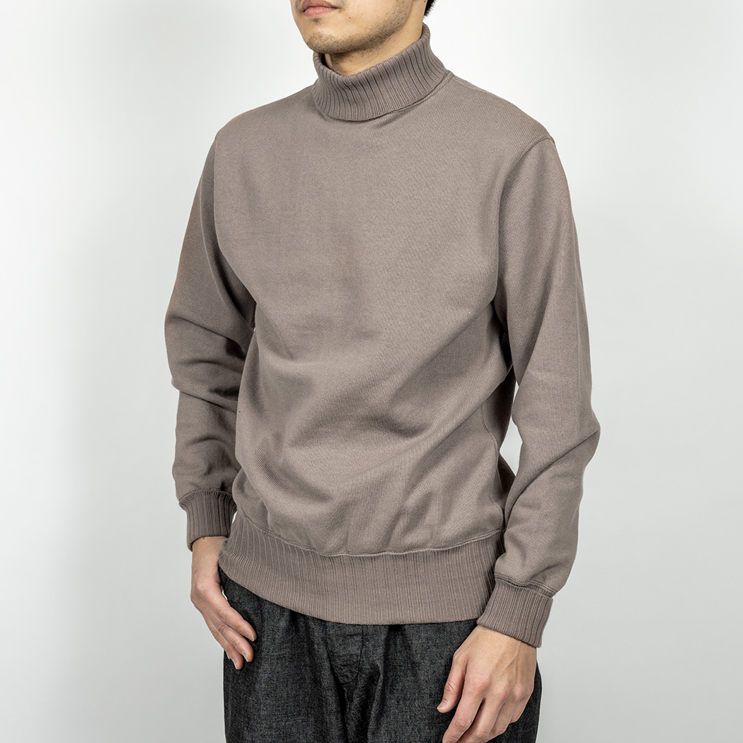 RAF Sweater、イメージは映画ダンケルグで出てきたRAFパイロットが着ていたハイネック。イギリス系のミリタリーウールセーターで、極太の針抜きリブが良くあります。RAF だとか、サブマリンだとか色々言われ、ウールで作られたリプロを着てみたことがあるのですが・・・当然チクチクする。インナーを着ても、どうしても首がチクチク。そこで、あの雰囲気をコットンで作ったのがWORKERSのRAF Sweater。