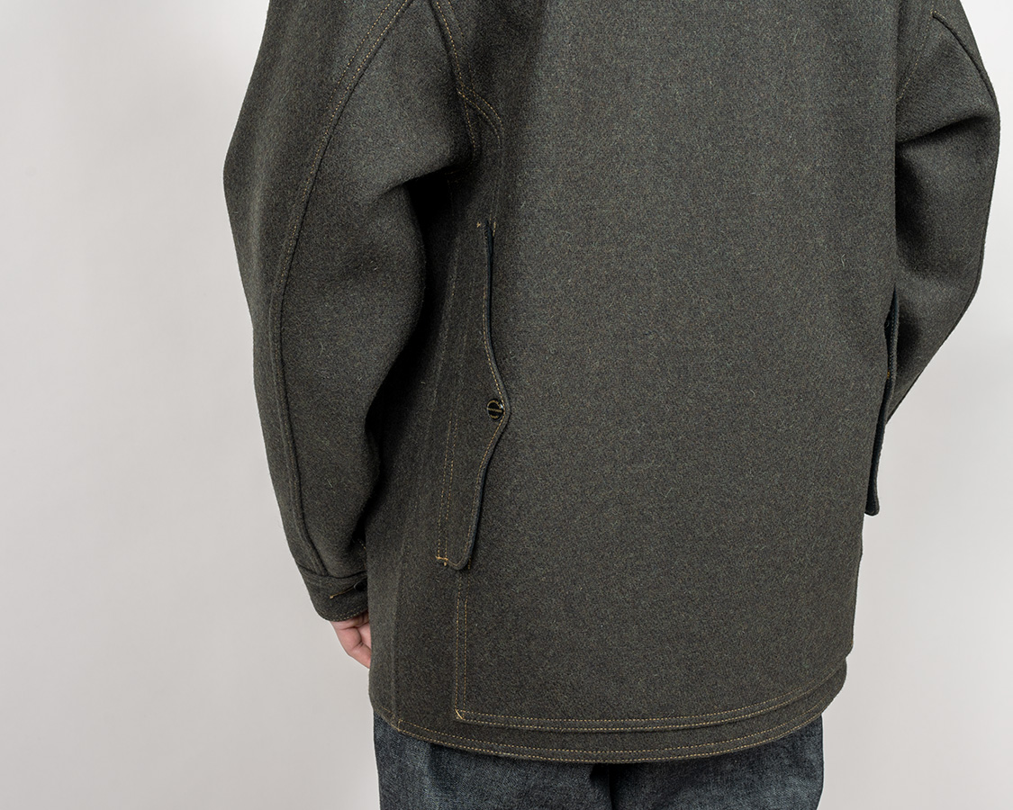 背面、ゲームポケットとか呼び名は色々ありますが、二重のポケット。物も入る、当然厚みが増して防寒性も増す。ただ、生地は余計に必要だし、異様に厚みが出る部分があり、縫うのは四苦八苦します。