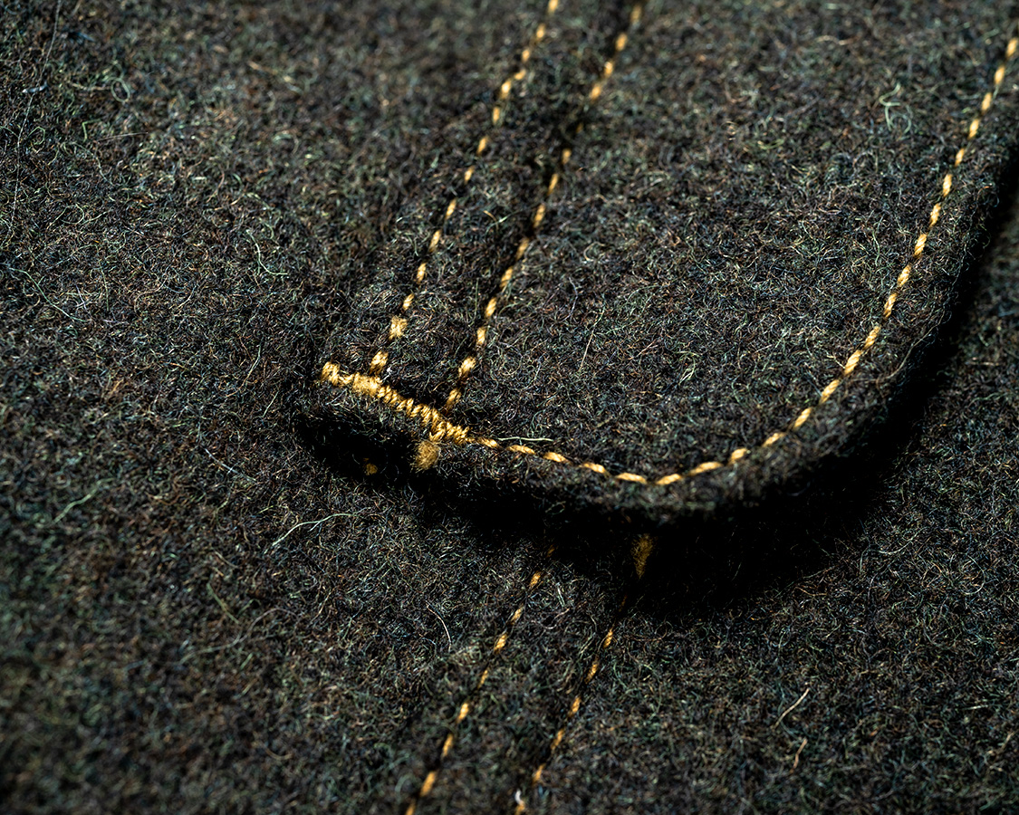 裏裾始末。オリジナルは断ち切りをそのまま使ってますが、WORKERSではパイピングをして始末。