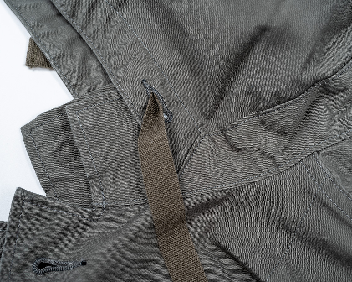 | フードにはコットンテープをスピンドル(紐)として入れてフード口が絞れるようにしています。 |