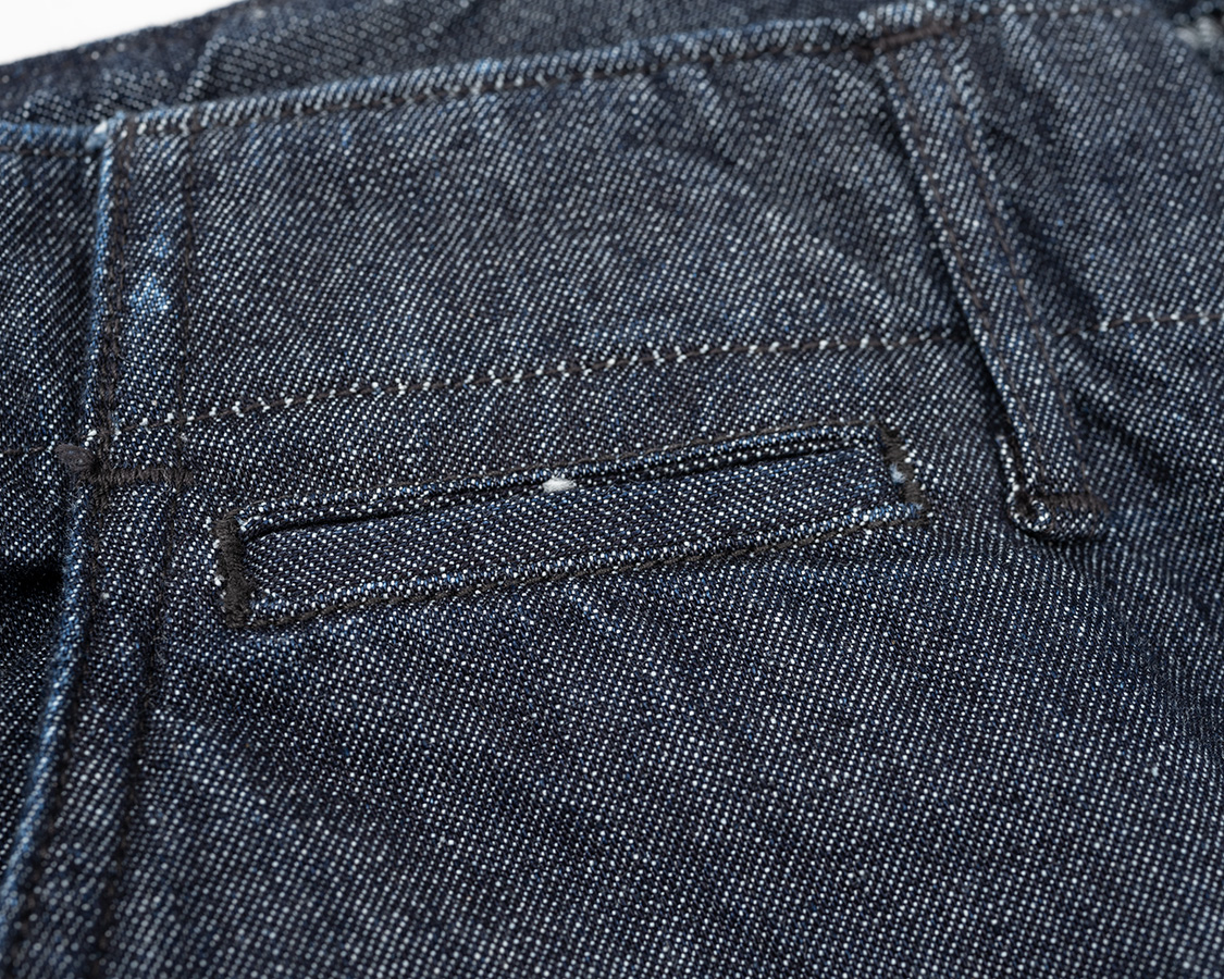 右前、コインポケット。正直、使い勝手は微妙。でもこれが無いとチノパン「らしく」無いのでつけています。個人的には、グレーディングの時にとっても邪魔で大変。小さくすれば収まりますが、小さすぎると意味が無くなる。結局、毎回、ループの位置の調整、ポケットを使える範囲内ギリギリで小さくしたり、工夫で何とかしています。
