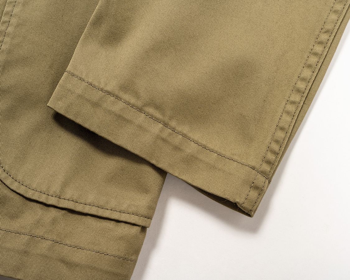 | チノのダブルステッチは巻縫いなのでパッカリングが少し出ています。 |