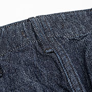 デニムもチノと同じ10 オンスですが、より太い糸でざっくり織られているので触った感じはよりラフ。チノは洗うとどうしても育つというよりボロくなる(それはそれでかっこ いいのですが)洗って、柔らかくなって、徐々に色落ちしてからも楽しめるのがデニムの良さ。 |