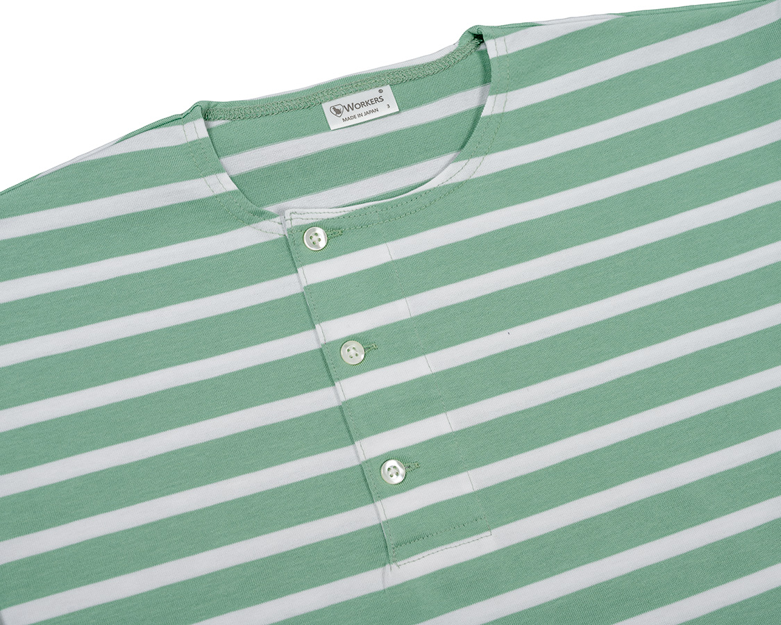 Border Henley, Half Sleeve, Aqua x White Border Henley, Half Sleeve, Black x White Border Henley, Half Sleeve, Navy x White Border Henley, Half Sleeve, Opal Green x White