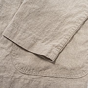 リネンは5オンス程。オンスはある程度ありますが、太い糸でざっくり織られているので向こうが透けて見える。この隙間から風が通って涼しい。ほぼチクチク無し。それでも気になる方は5回ほど洗うと、 かなり柔らかくなります。腰が無いのとは違う、リネン独特のプリっとしたハリはちゃんと残ります。