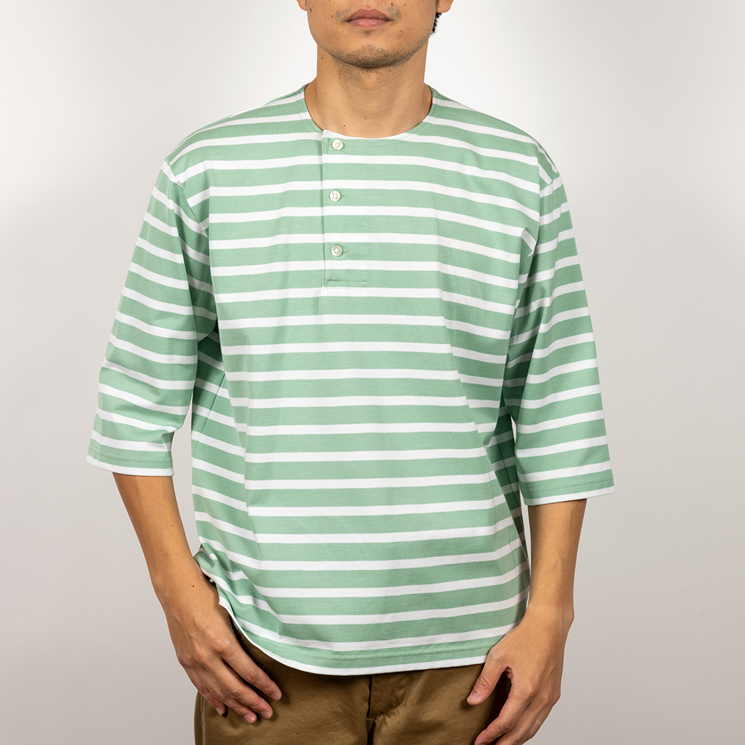 Border Henley, Half Sleeve, Opal Green x White |