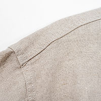 リネンは5 オンスクラス。定番で使っているチクチクがほぼない生地。プルプルと反発力があり、これが生地の