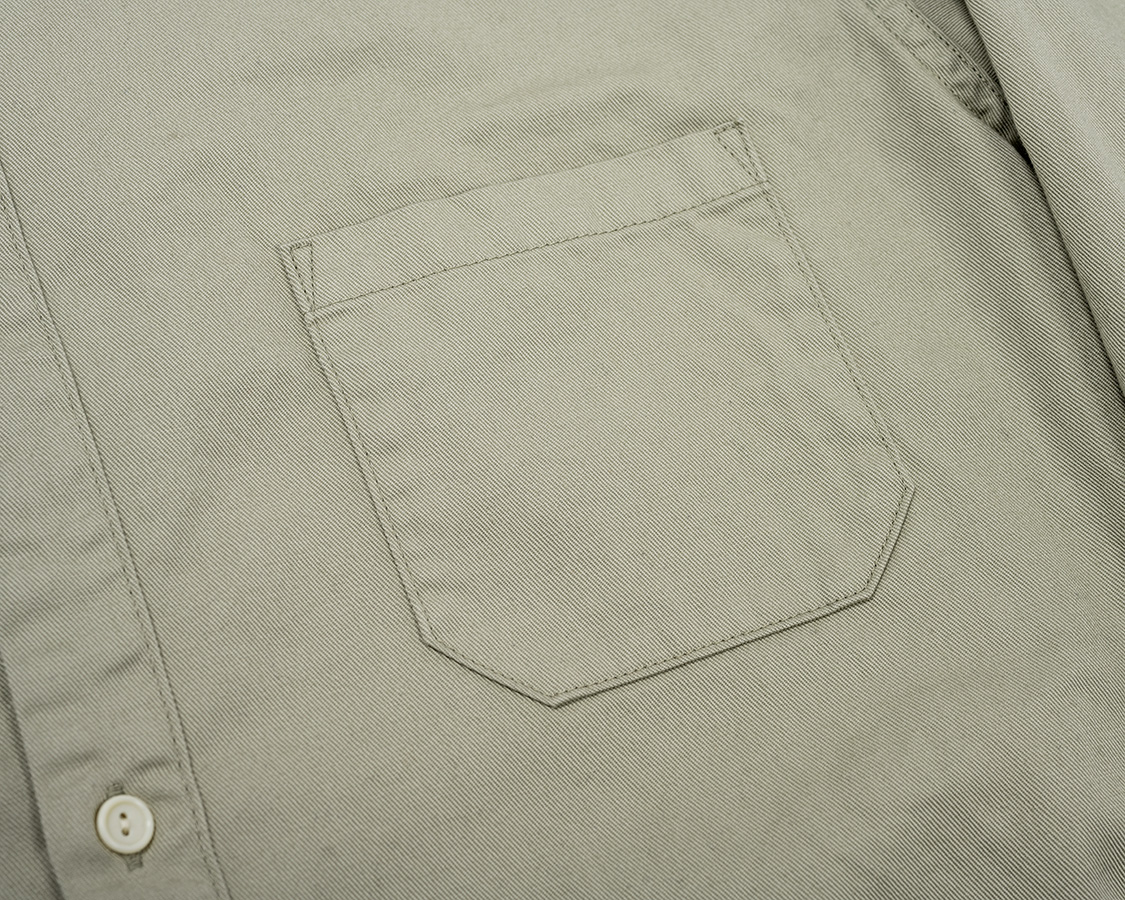 本来なら、見返し始末する部分を続き裁ちにして折って始末したらどうかな?と考えました。これもシンプルというか、プリミティブというか、独特な雰囲気でこのシャツに良く合ってます。