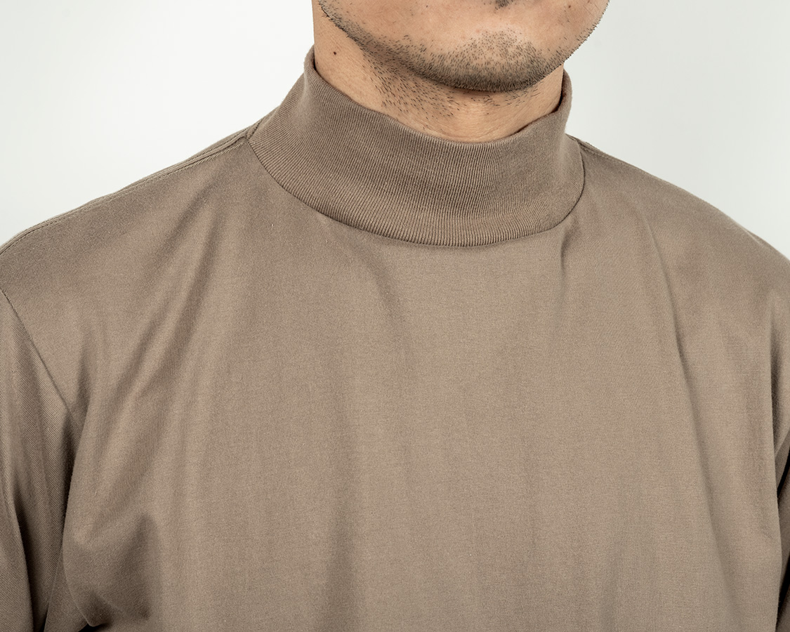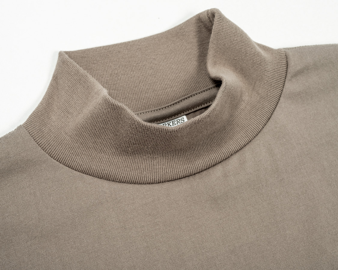 着るときに頭は通る、でも首回りつまり過ぎず、高すぎず。上着に首が直接触れるのを防いでくれるモックネック。