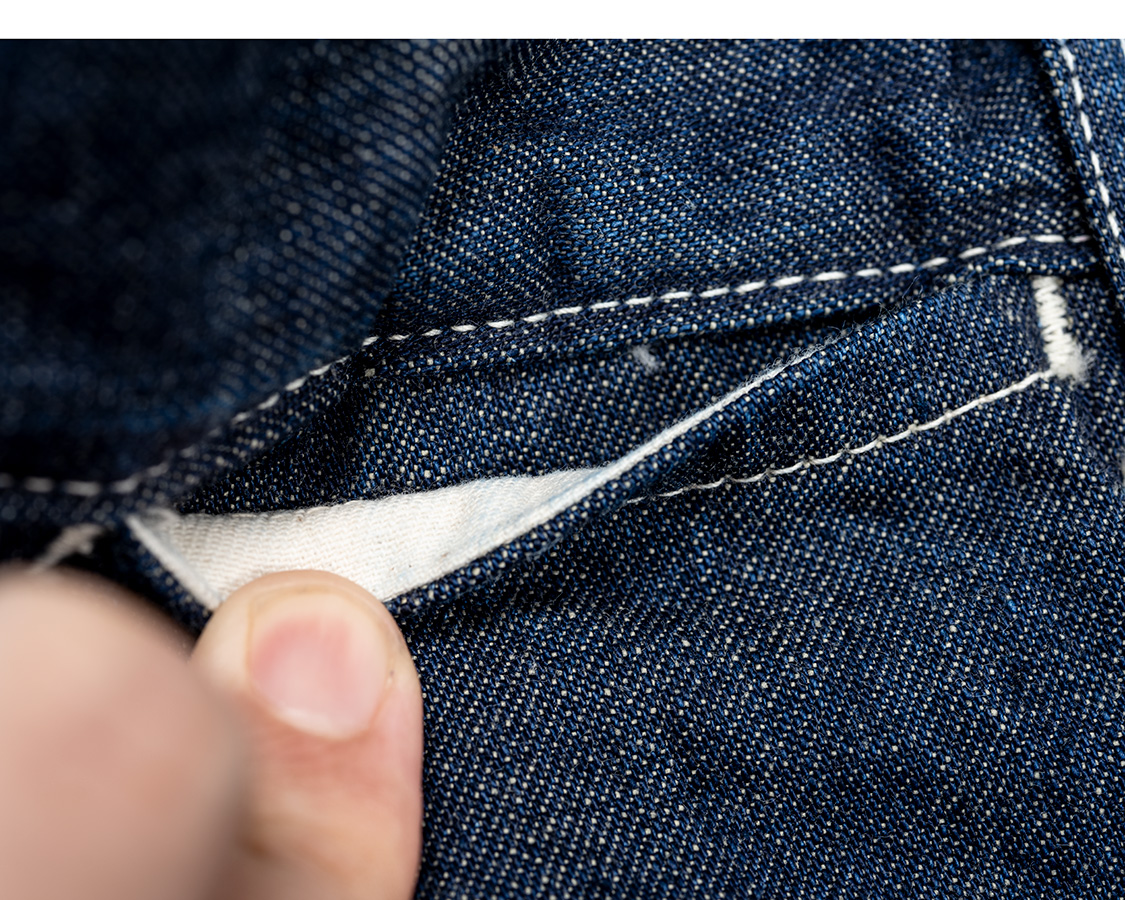 | コインポケット。おそらくオリジナルはここに見返しがつくのだがあえて袋布をそのまま使って厚み軽減。 |